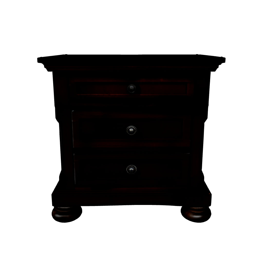 The quality craftsmanship is clear to see. The classic design elements—including antiqued hardware and bun feet—are easy to love. Satisfying your taste for traditional furnishings, this nightstand is elegant without looking fussy. Two drawers—one large, one small—keep bedside odds and ends within easy reach. A hidden pull-out tray behind the bottom drawer puts your small valuables out of sight.
