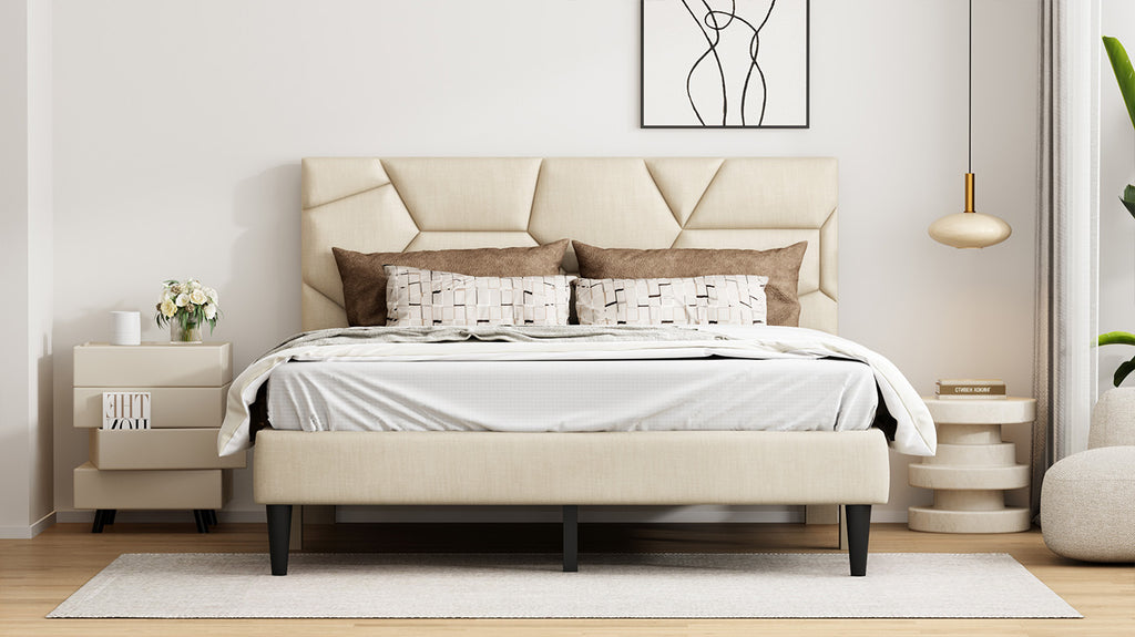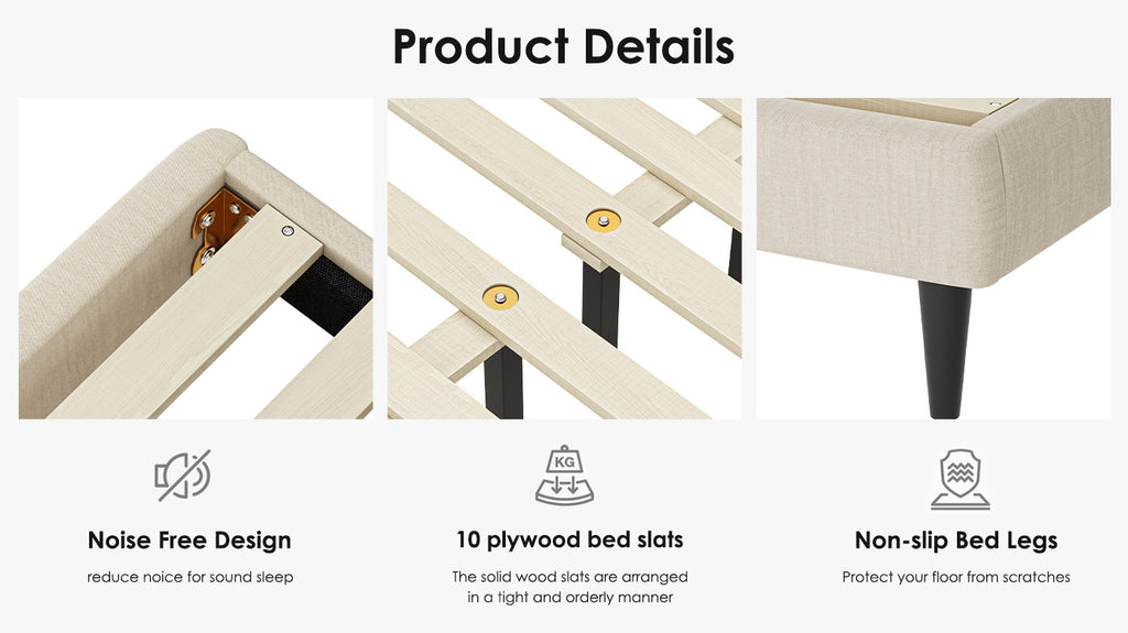 - Easy Assembly in Beige: Featuring a simple assembly process, this Beige bed frame combines functionality with a minimalist design, seamlessly blending into any bedroom decor.