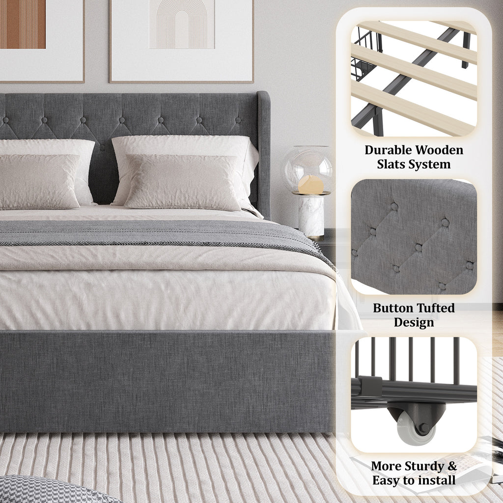 - DELUXE WINGBACK BED FRAME: Wide side wingback better supports your head and shoulders when leaning on the headboard, further enhance the stability, and effectively prevents the pillow from falling