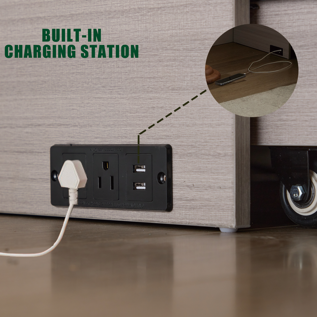 This Murphy Bed Cabinet is equipped with a charging station(including USB ports), which makes charging very convenient.