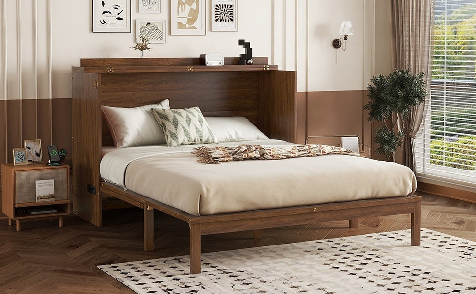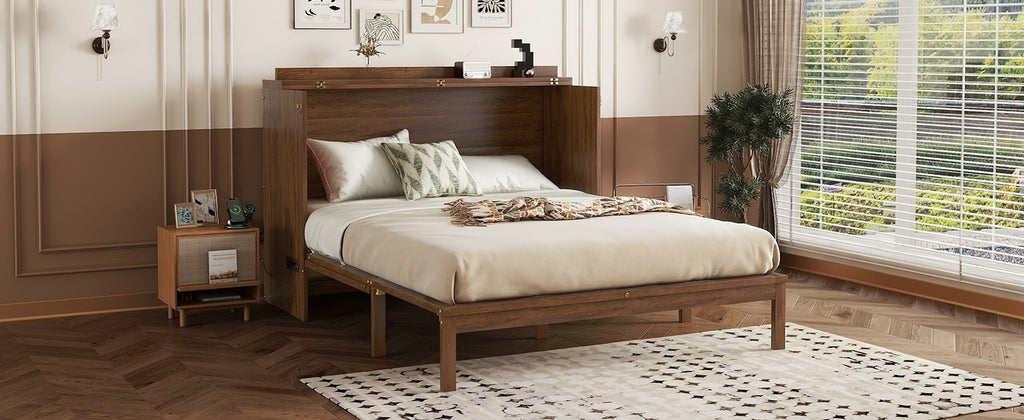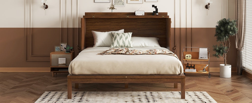 - [Space-Efficient Design] The queen Murphy bed cabinet can be effortlessly converted between cabinet and queen size platform bed. The bed platform can be folded up completely in a cabinet to free up floor space when not in use. Its concise and practical design harmoniously integrates into your decor as a dresser or cabinet.