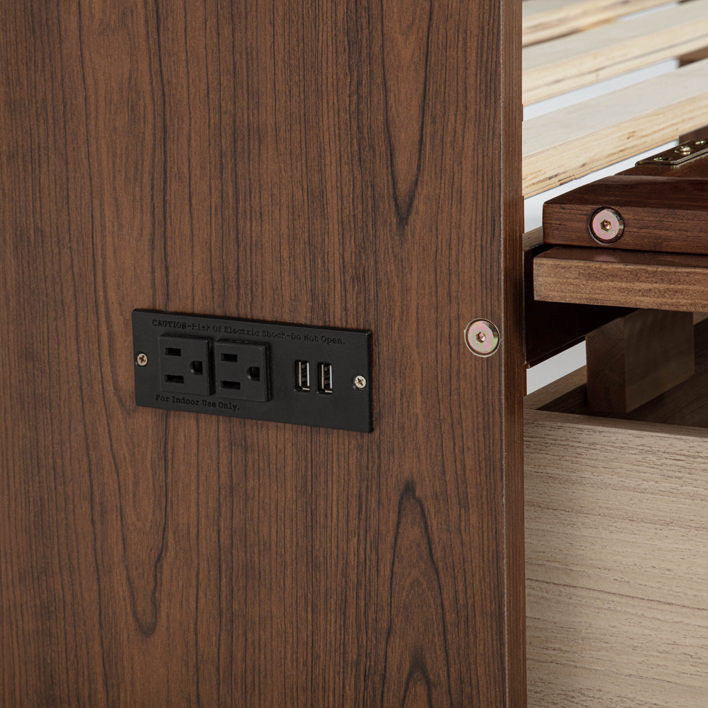 - [Charging Station]The Murphy bed cabinet boasts a practical integrated charging station, complete with power outlet and USB port located on the lower side. The built-in charging station offers accessibility whether the unit is in cabinet or bed model, with two power outlets and two USB ports for quick and easy charging of phones, laptops, and other electronic devices.