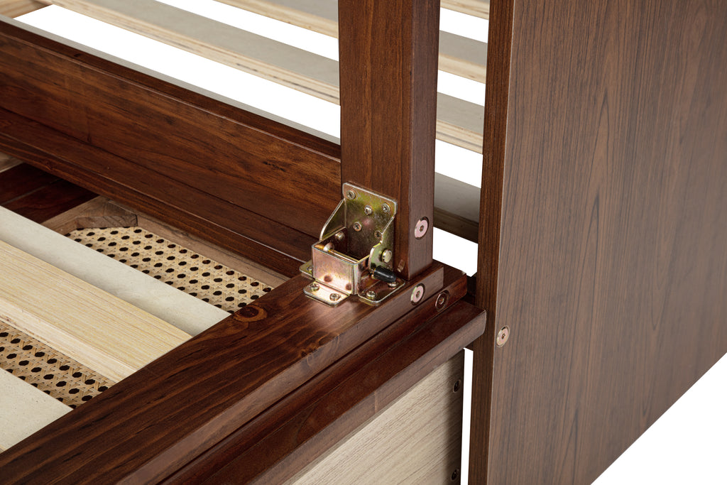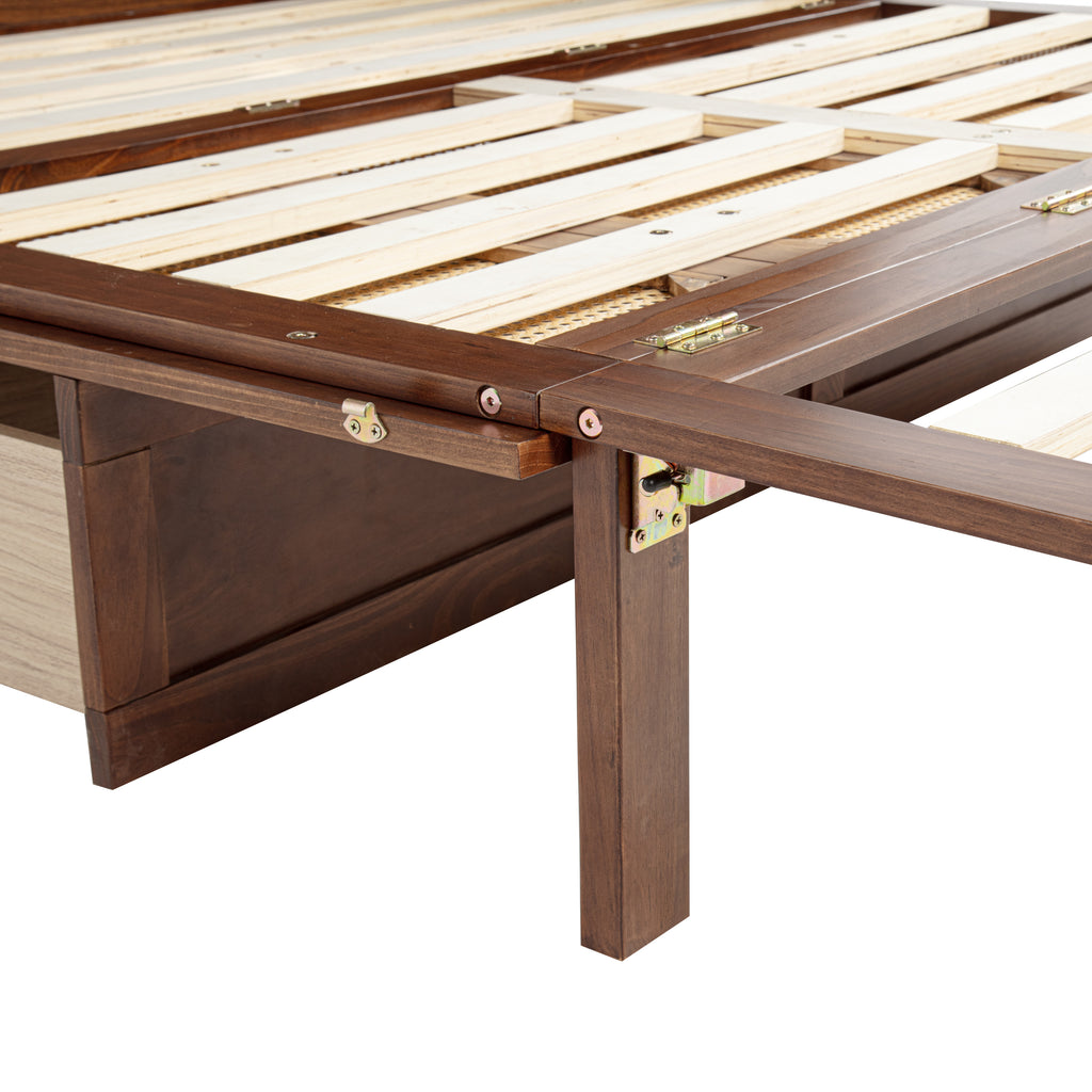 - [Unique Rattan Decoration & Large Drawer]The distinctive rattan decoration panel of this cabinet bed harmoniously infuse your bedroom décor with a vintage attraction and fostering a cozy yet fashionable ambiance. An additional compelling feature of this cabinet bed is the incorporation of spacious drawer, which represent an exemplary space-saving furnishing solution.