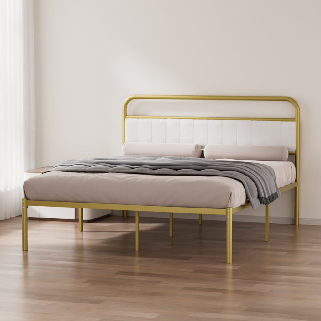 - Stylish and Functional Design - The classic beige linen fabric combined with the gold metal frame gives this queen size bed frame a modern, fashionable look. Brighten up your sleeping space.