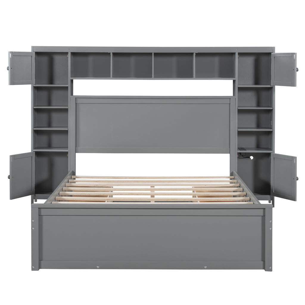Maximize your bedroom space with our Queen Platform Bed, crafted from solid wood and featuring four integrated drawers for ultimate organization. Stay connected and charged with convenient built-in power outlets, blending modern technology seamlessly with timeless design. Indulge in luxurious comfort and superior stability, transforming your sleep sanctuary into a functional and elegant retreat.