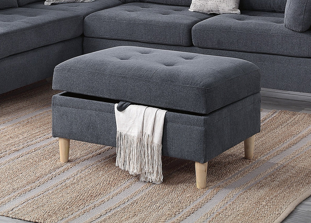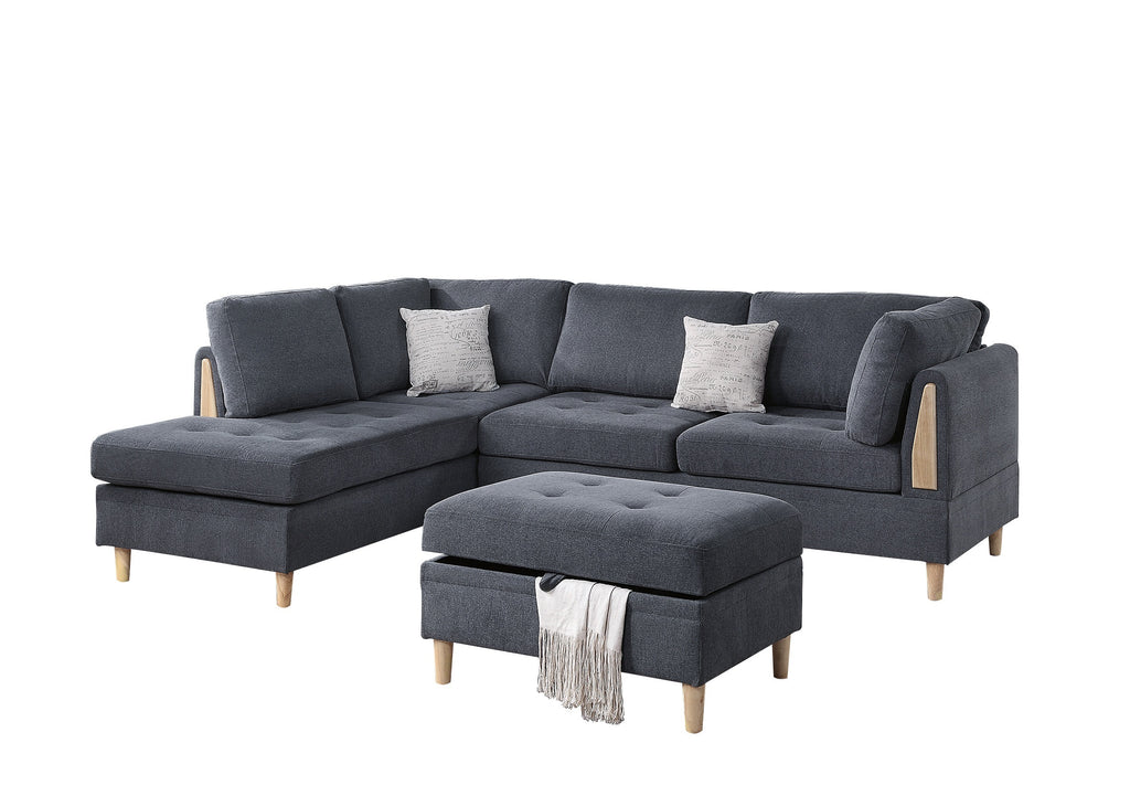 This elegant three-piece sectional sofa is the perfect centerpiece that ties your living space together. With the stylish wooden leg support and the beautiful design of the sofa, this set brings so much comfort to the modern home. The storage space in the cocktail ottoman provides extra space to store your favorite magazines and books. Available in neutral colors of Charcoal, Mushroom, and Chocolate. (Chenille).