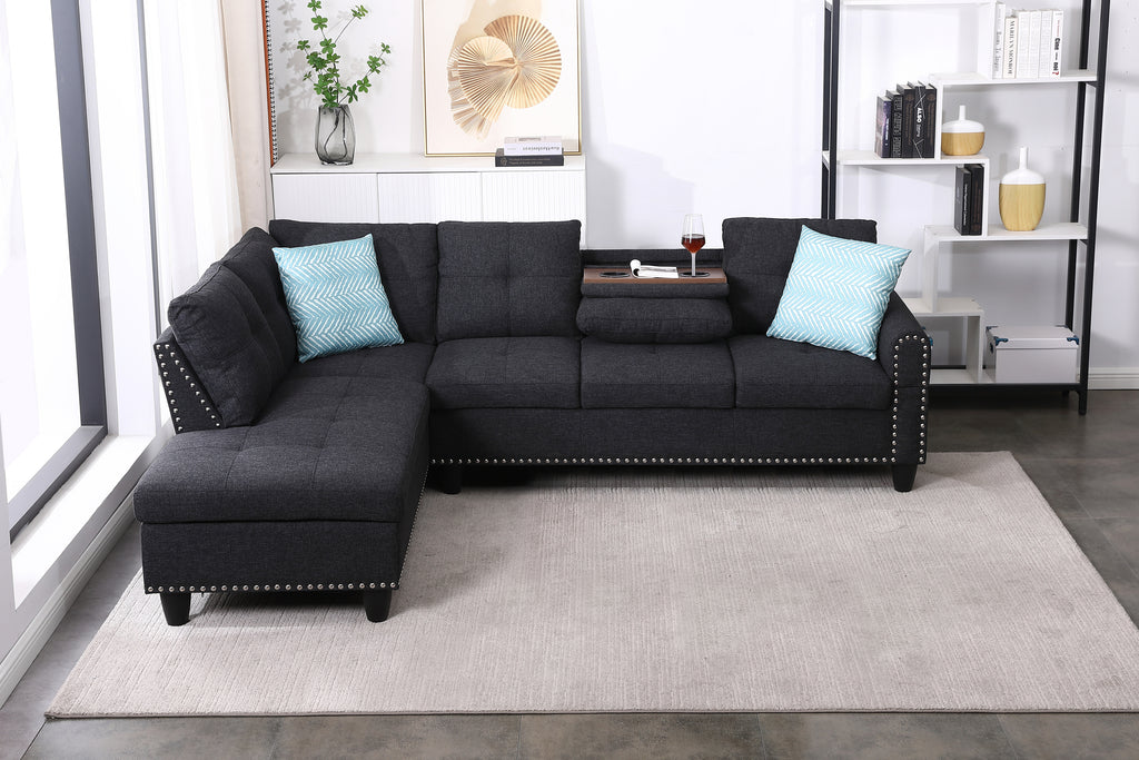 - Seating & Silhouette: L - shaped 3 - piece sectional seats four, ideal for game/movie nights, with a pull - down middle seat having two cup holders.