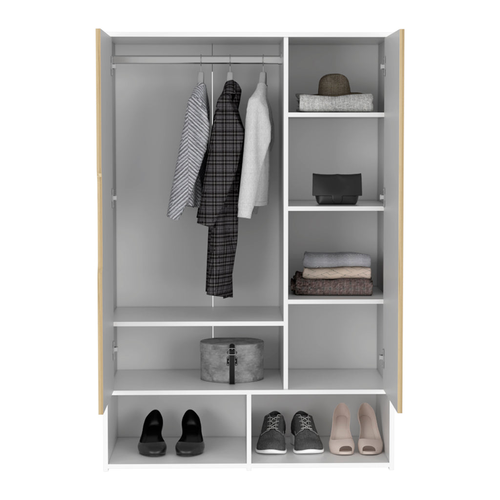 - SPACE-EFFICIENT DESIGN: This closet Wardrove armoire cabinet features Two doors and shelves, maximizing storage within a compact footprint. Whether utilized in the kitchen or bedroom, it seamlessly fits into any room