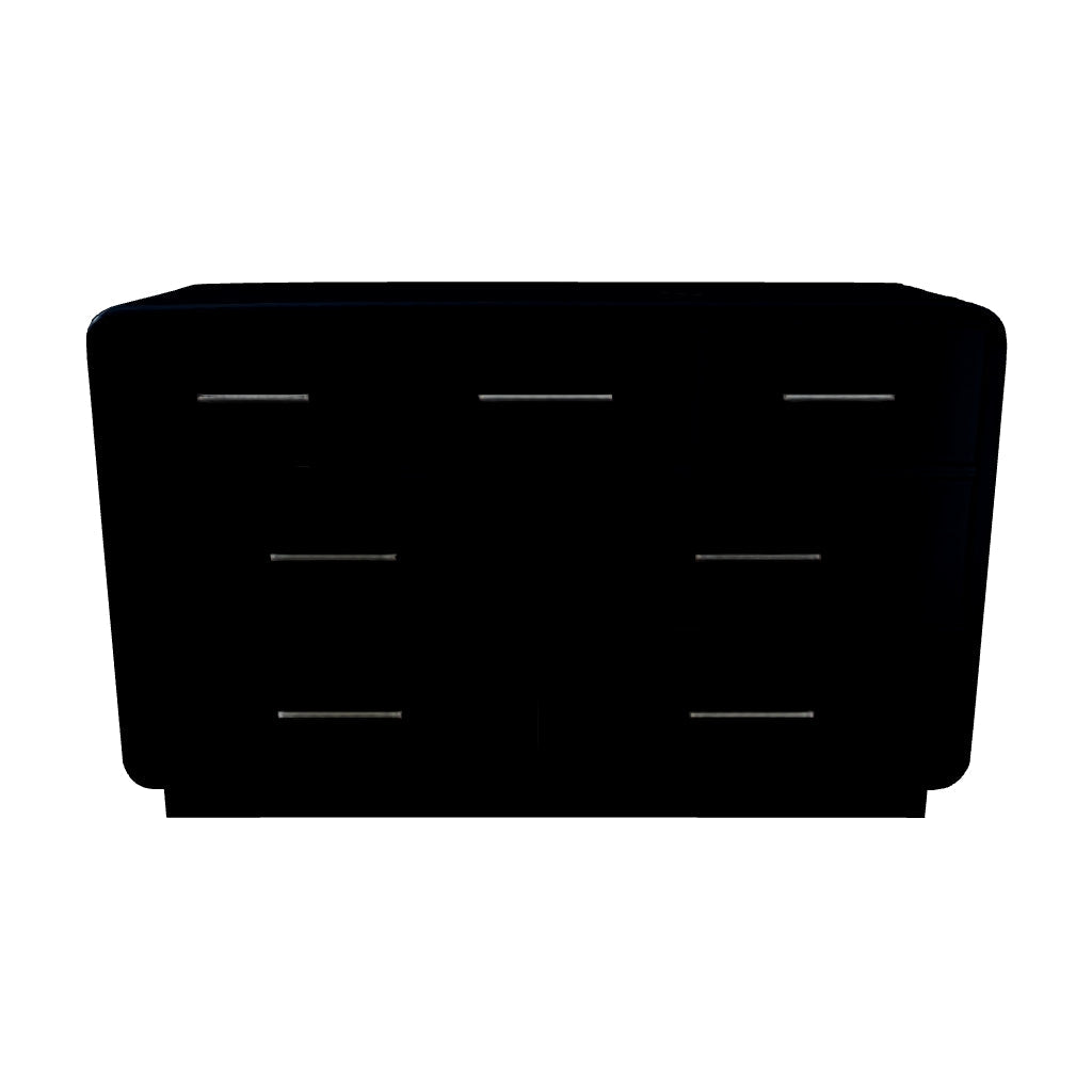 Inspired by art deco design, this softly shaped dresser makes a lasting impression in a simply stunning way. Its magnificent curved silhouette is enhanced by a rich layered black finish on the textured wood grain surface. This is the statement piece you’ve been dreaming of to elevate your contemporary inner sanctum.