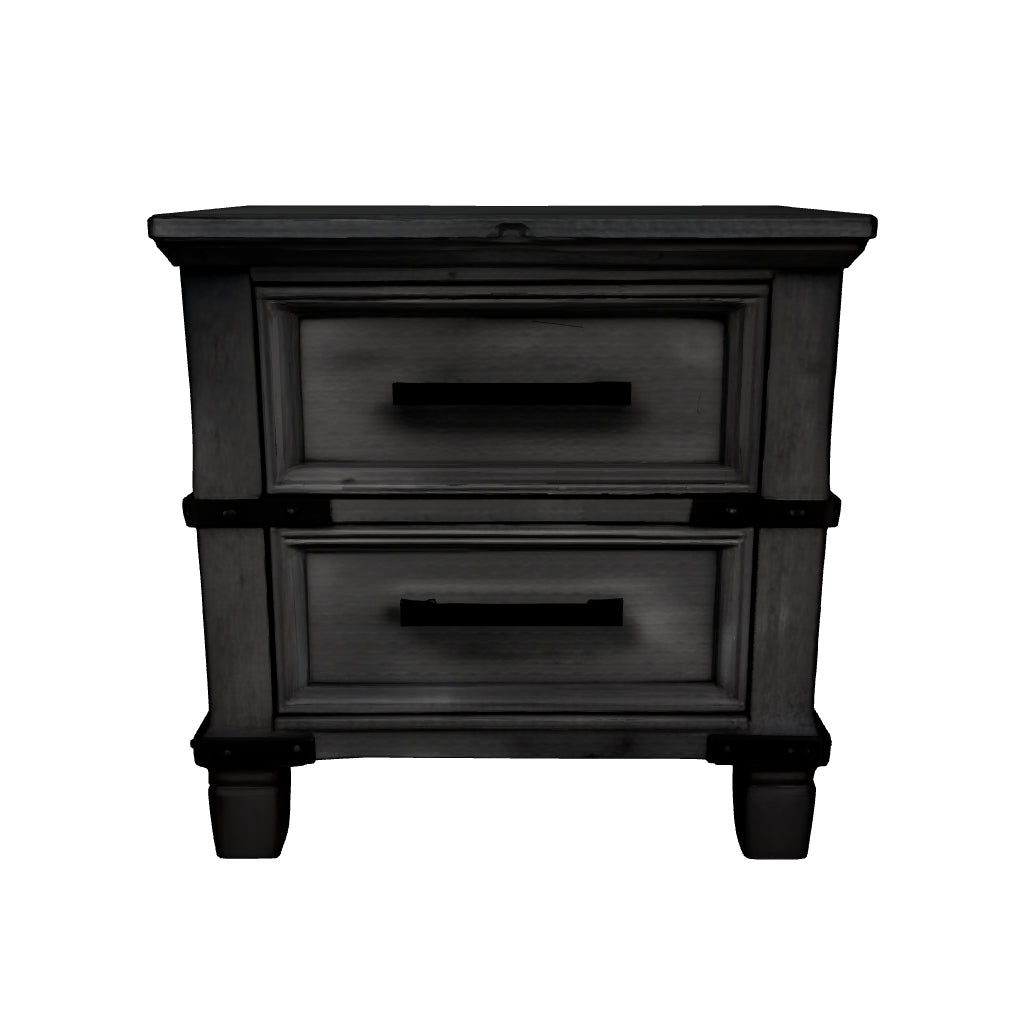 What's old is what's new with this nightstand. Serving up a fresh look in urban farmhouse style, this eclectic piece features a light weathered gray finish with dark aged bronze-tone bar pulls and metal straps for a casually cool sensibility. Profiled drawer frames, thick-profiled top moulding and tapered legs are the earmarks of timeless design.