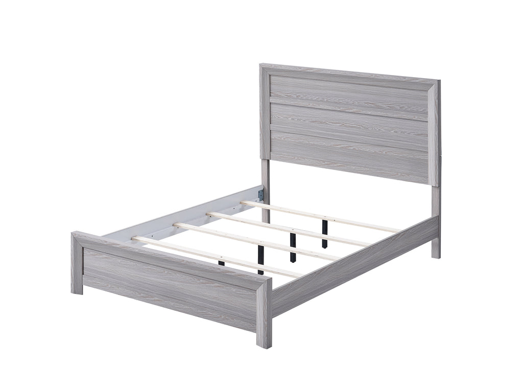 Elevate your bedroom with this contemporary gray wood twin bed, boasting a rustic finish and a distinctive decking headboard. Crafted for solid durability, its clean lines and paneled design offer a warm, modern centerpiece. This stylish bed seamlessly combines tasteful aesthetics with long-lasting quality, creating your perfect sleep sanctuary.