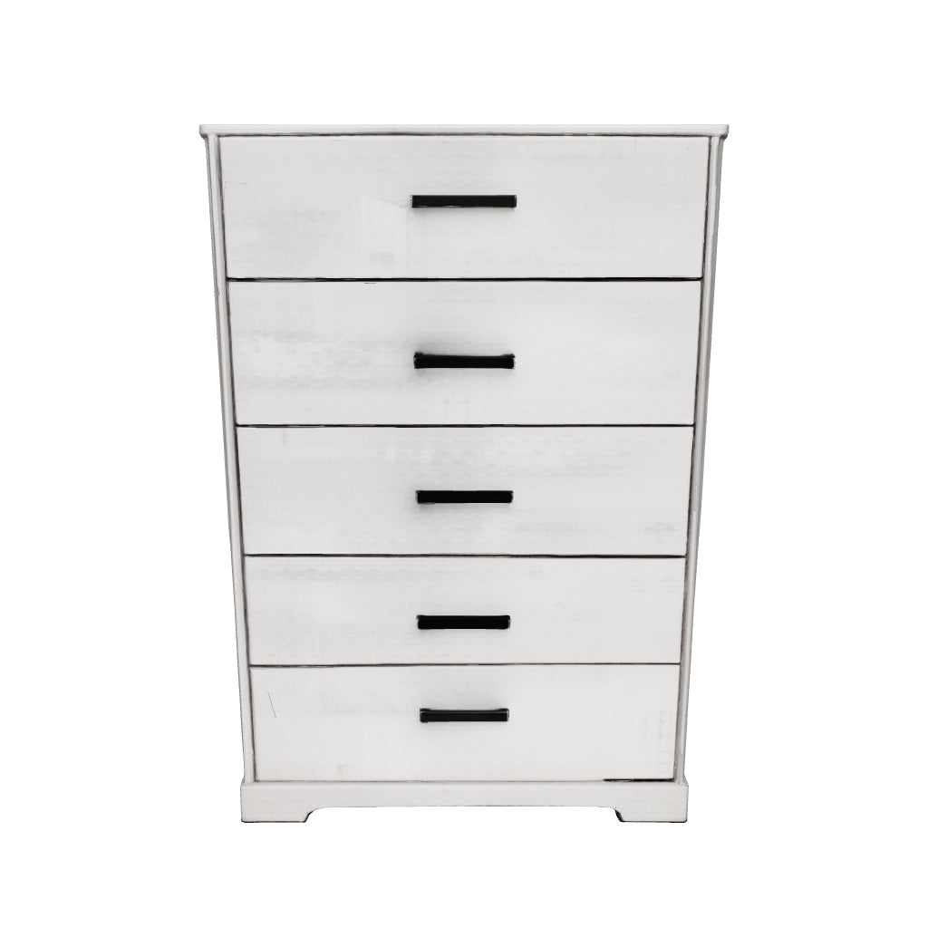 Give casual a new meaning with the chic look of the Shawburn chest of drawers. A light gray finish over replicated oak grain keeps it laid-back and inviting, while substantial pulls in a warm pewter tone add a modern farmhouse touch. Spacious drawers give you plenty of room to store your wardrobe. Talk about a delightfully relaxed vibe in your inner sanctum.