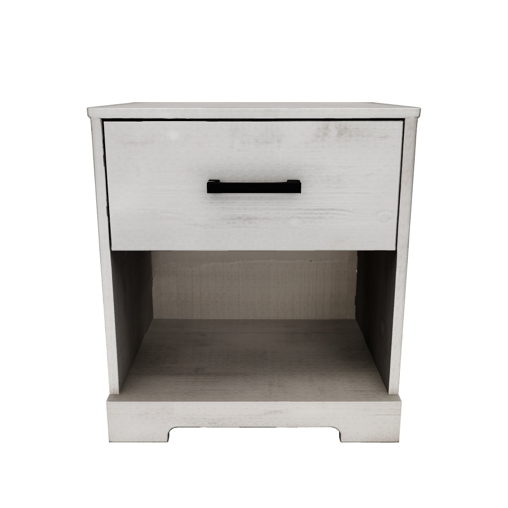 Give casual a new meaning with the chic look of this nightstand. A light gray finish over replicated oak grain keeps it laid-back and inviting, while the substantial warm pewter-tone hardware adds a modern farmhouse touch. The open cubby provides display space or accommodates a storage bin to add a delightfully relaxed vibe to your inner sanctum.