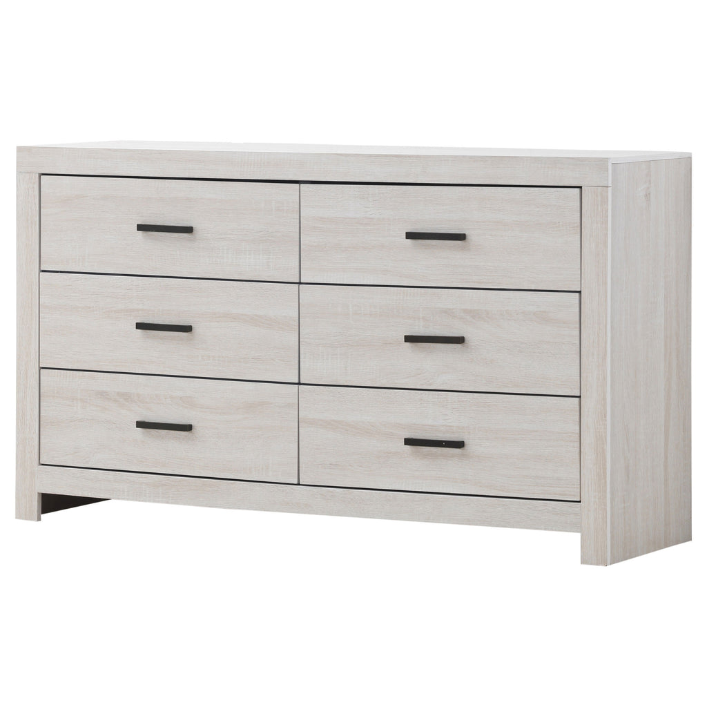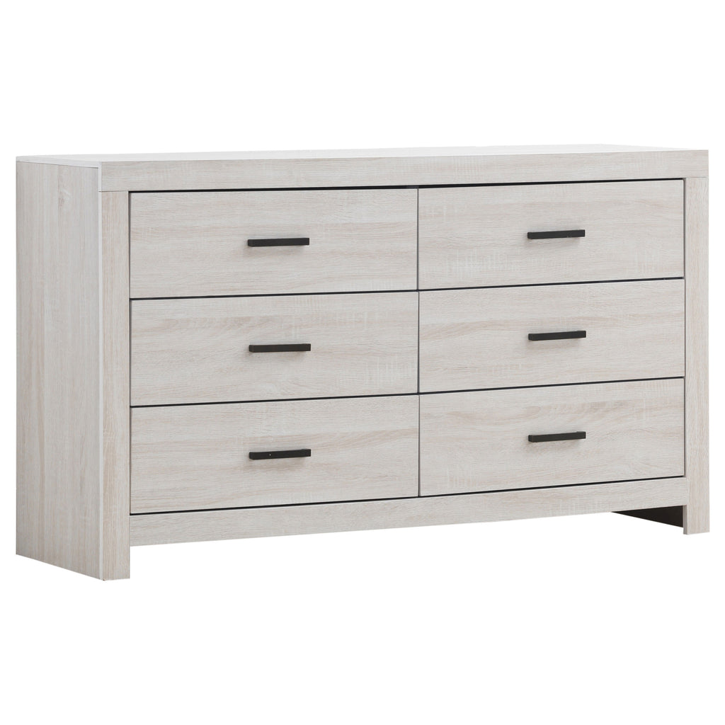 - Six-drawer dresser features a sleek and modern silhouette, perfect for enhancing bedroom decor with contemporary style