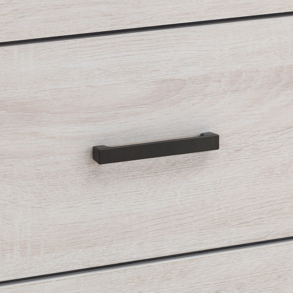 - Sturdy engineered wood construction paired with durable laminate veneer ensures resistance to scratches, stains, and everyday wear, while matte dark bronze handles provide a striking contrast