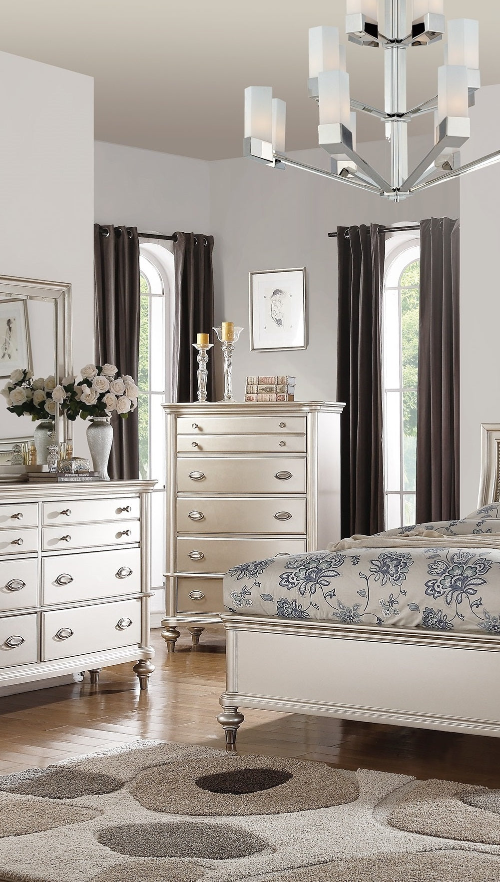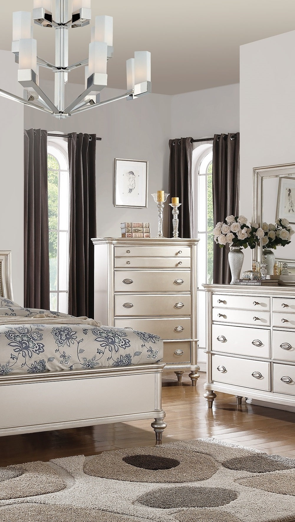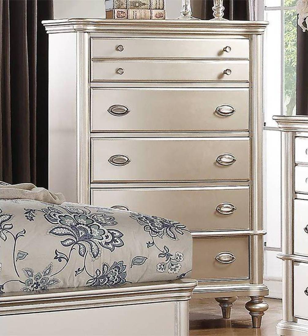 This chest fills a room with dynamic look and cozy appeal. Chest features 5-drawers for storing your private, fashion, magazines, and more reading material. Clean, modern design elements along with a fresh yet timeless look will transform your bedroom into a haven of serenity and style.