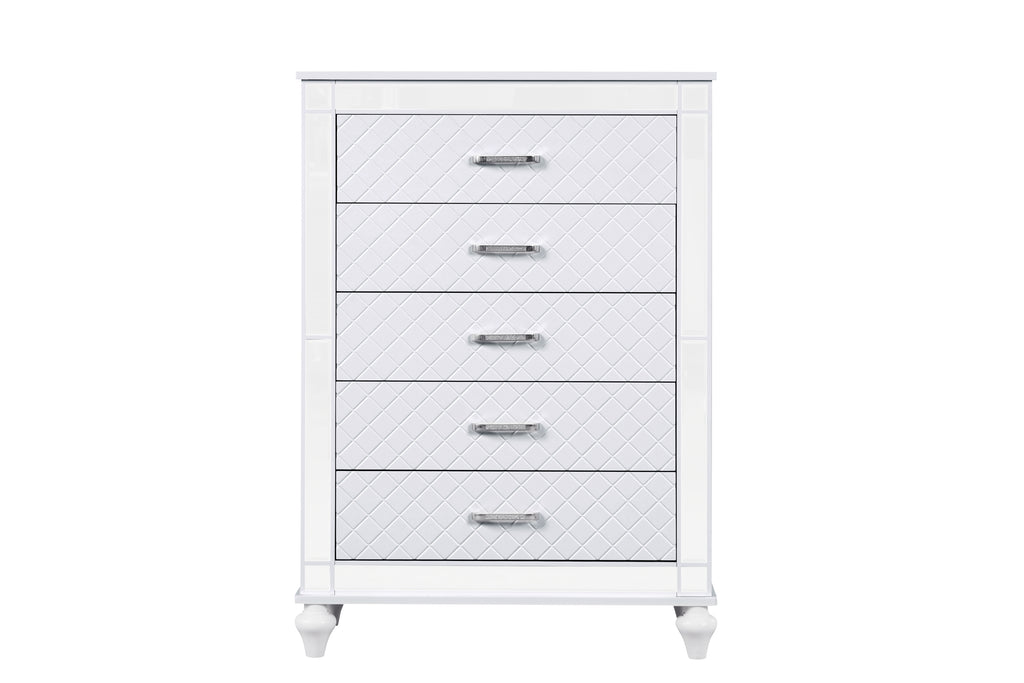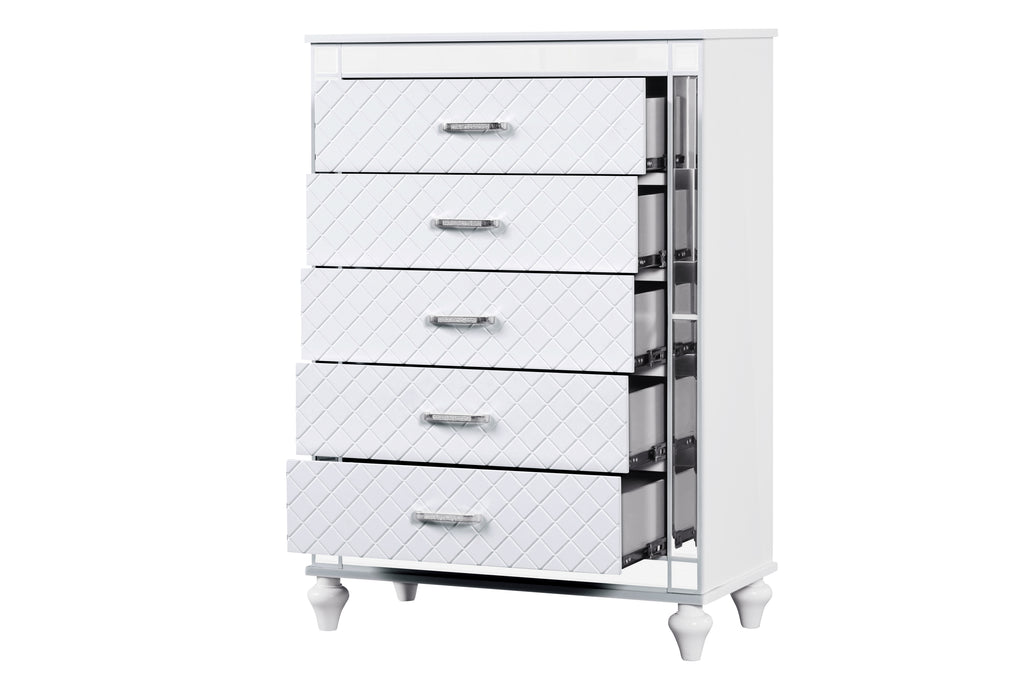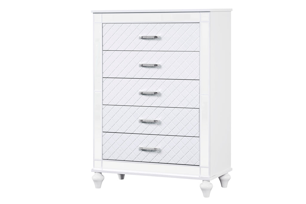 This striking chest offers a delightful blend of functionality and contemporary style, enhancing any bedroom or living area.
