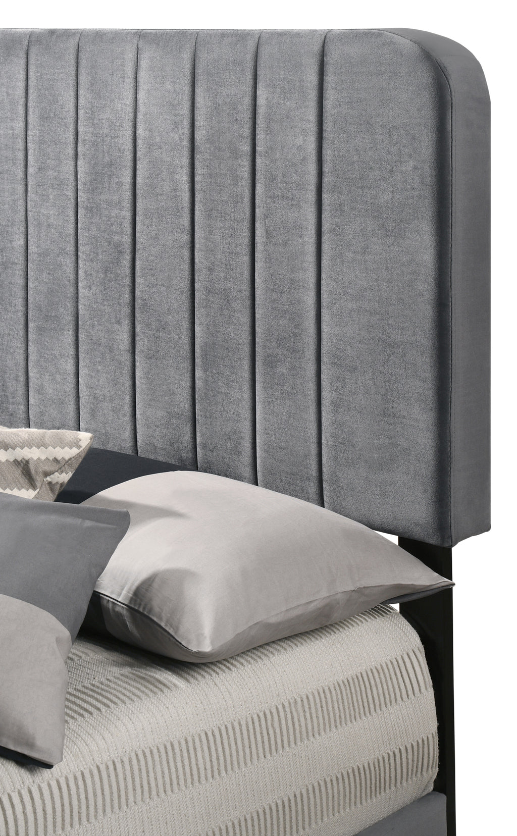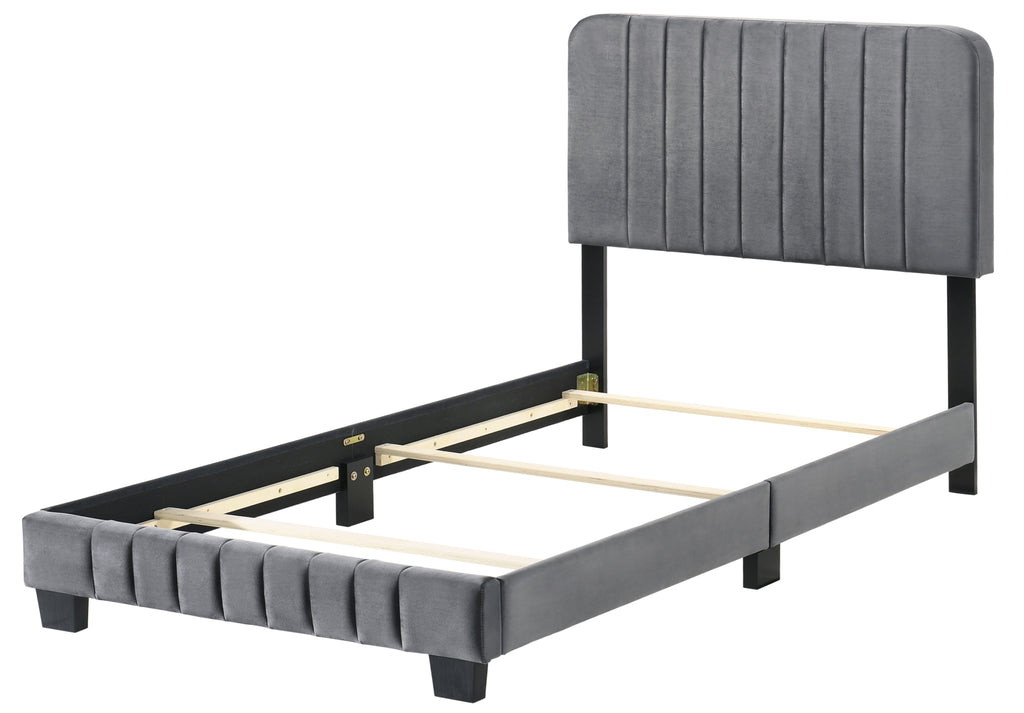 This twin bed presents a stylish solution to enhance any bedroom decor while ensuring essential comfort. The rich gray velvet finish creates a sophisticated ambiance that blends seamlessly with various design themes.
