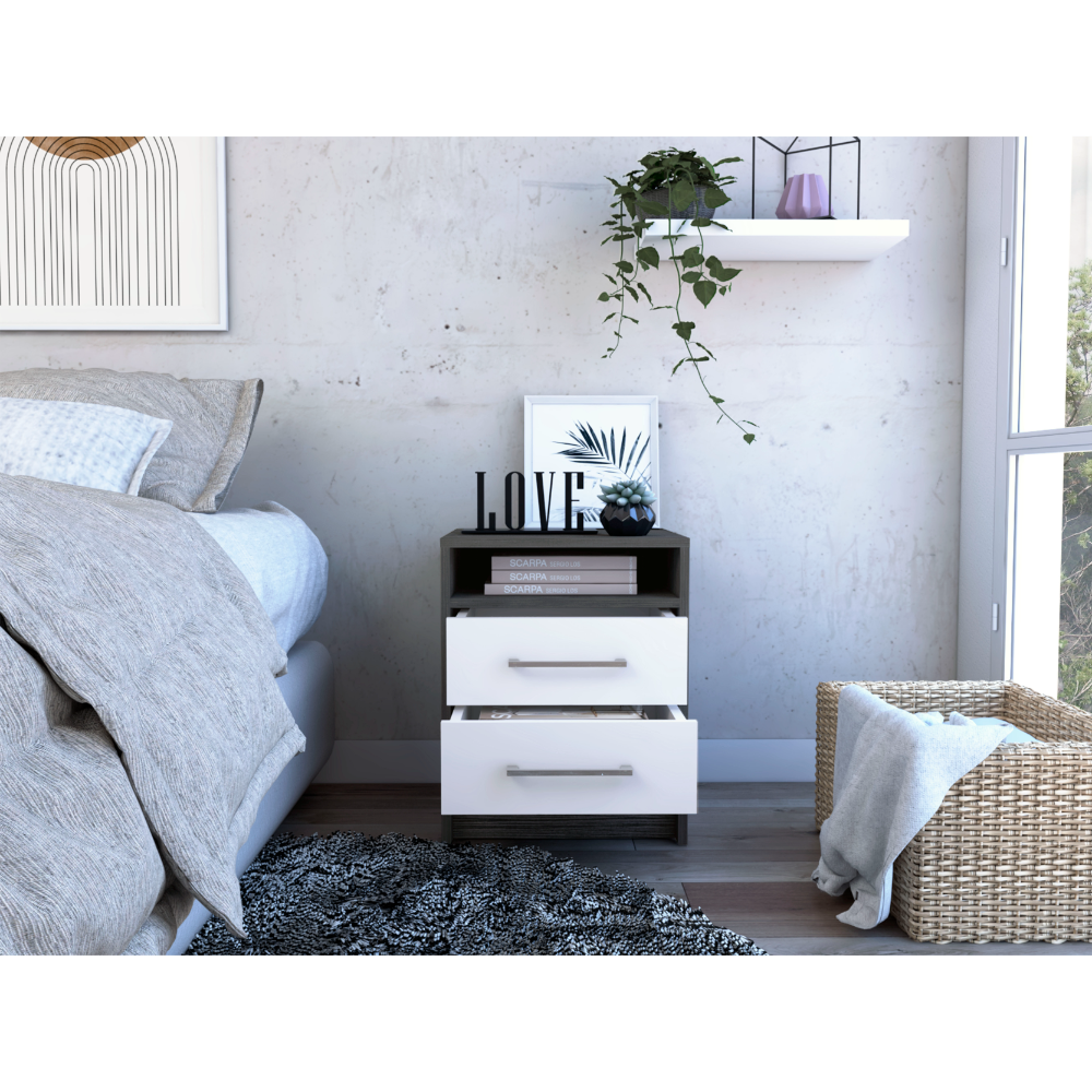 Smokey Oak White Nightstand 20"H, Two Drawers, Metal Handles