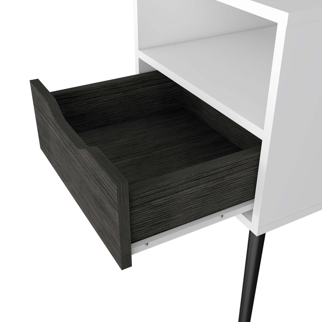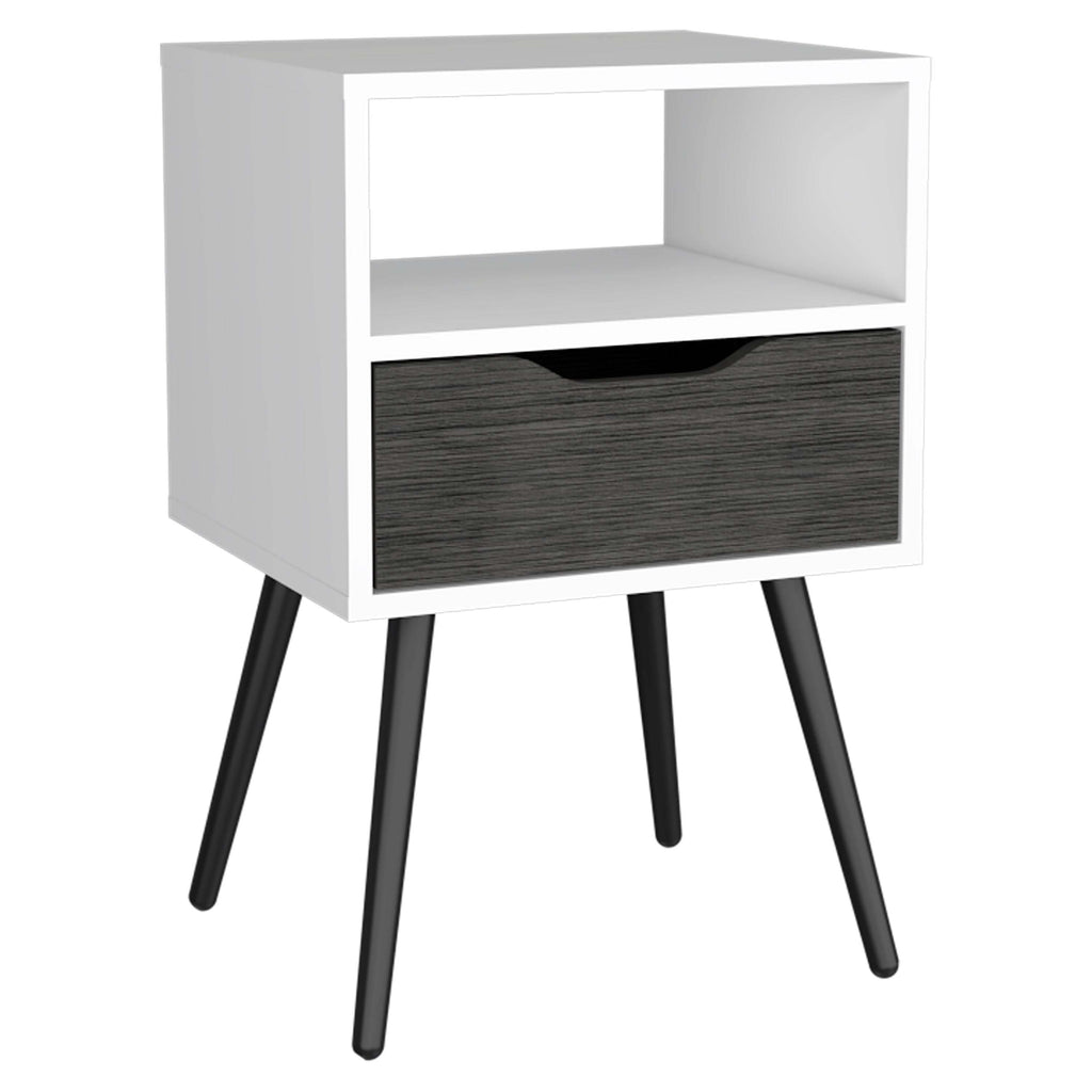 Smokey Oak White Nightstand 25"H w/ Drawer & Open Shelf - Superior Top