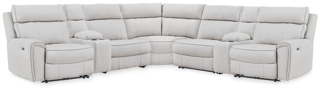 Social Pointe - 6-Piece Power Reclining Sectional - Pearl / Ash