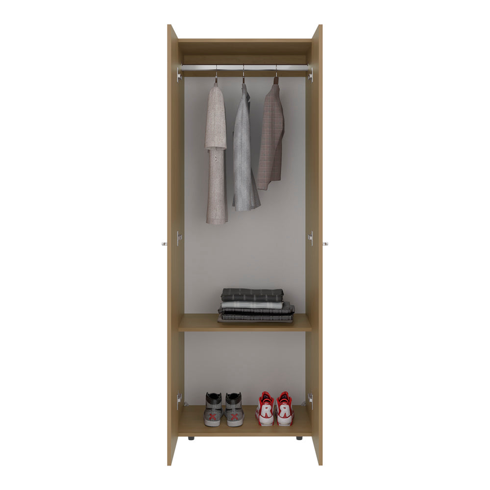 - Includes a hanging rod for clothes and a shelf for folded items, shoes, or bags.