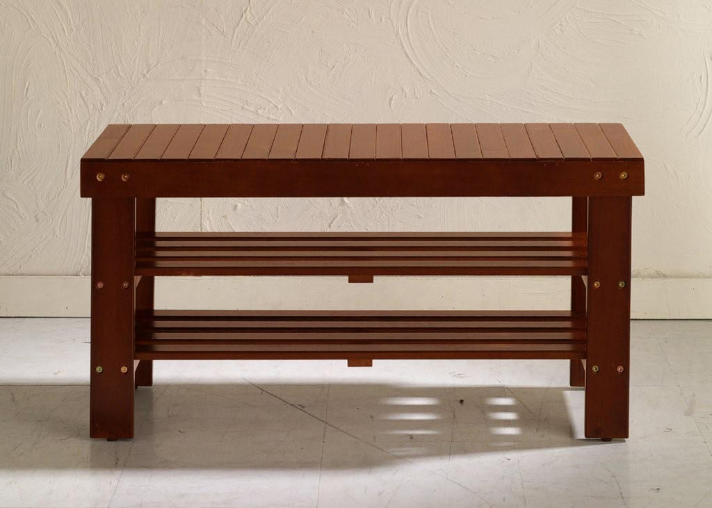 Cherry Finish Solid Wood Shoe Bench with Shelf
