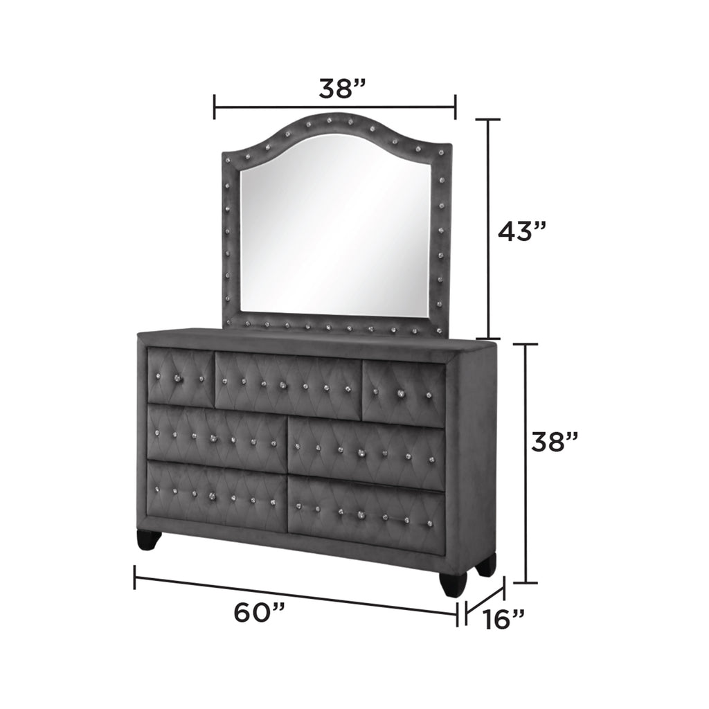 Introducing the versatile bedroom set, available in both 4PC and 5PC options, each designed to bring modern elegance with a hint of glam to your bedroom. Crafted from wood and adorned with Crystal Tufted detailing, this collection is the epitome of sophistication. In the 4PC set, you can choose between a bed, mirror or vanity mirror, and either a dresser or a vanity, along with a nightstand. The 5PC set includes all these elements plus a spacious chest for enhanced storage. Please note that each set allows you to select either a dresser or a vanity, ensuring you have the flexibility to create your dream bedroom with the pieces that suit your style and needs.