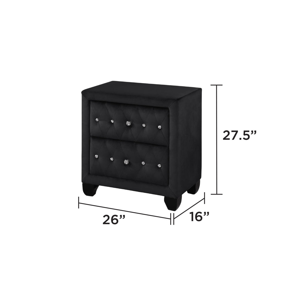 The 2-Drawer Nightstand combines functionality with sophistication. Its two spacious drawers and crystal-accented drawer pulls provide ample storage and a touch of elegance. Its sleek, modern design makes it a versatile addition to any bedroom decor.