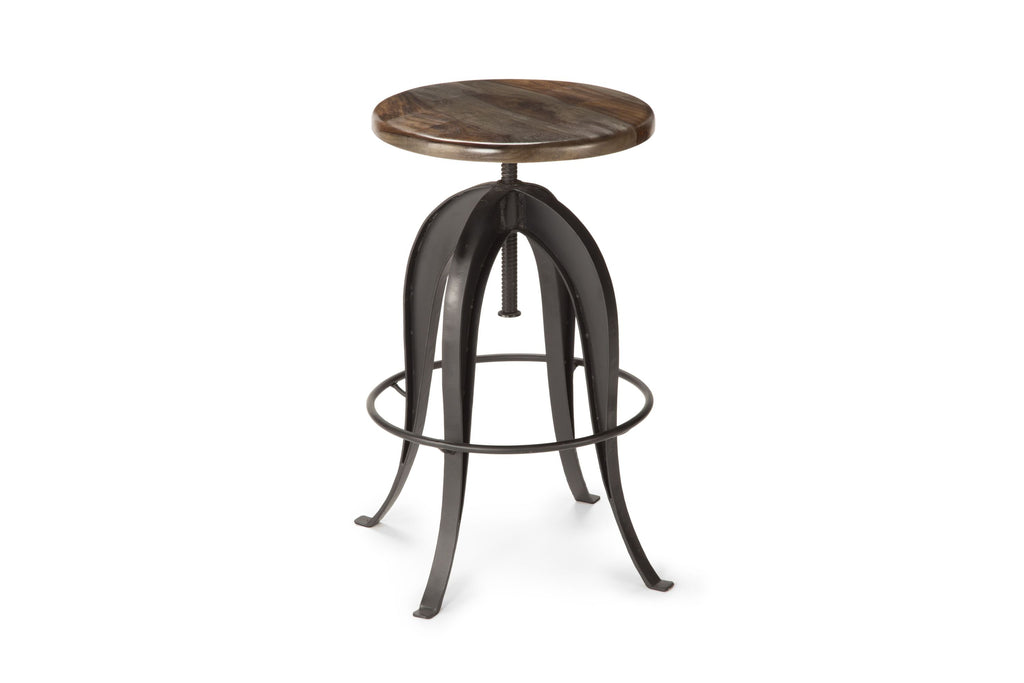 - Solid wood seat top Metal quad style frame Smooth crank mechanism for ease of adjustment from 24 to 36 inch height to fit 36 or 42 inch high Counters