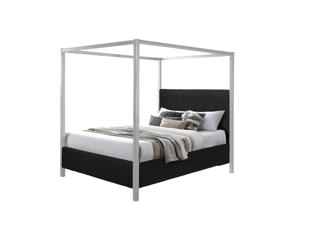 Redefine luxury and style in your bedroom with this stunning canopy bed, designed to make a bold yet elegant statement. Its sleek, minimalist frame provides a modern take on timeless sophistication, while the upholstered headboard, featuring soft vertical channeling, adds texture and an inviting touch of comfort. Perfectly suited for creating a cozy sanctuary, the open canopy design offers endless opportunities for customization with drapes, lights, or greenery to reflect your unique style. Transform your space into a serene retreat that combines contemporary aesthetics with unparalleled comfort and versatility.