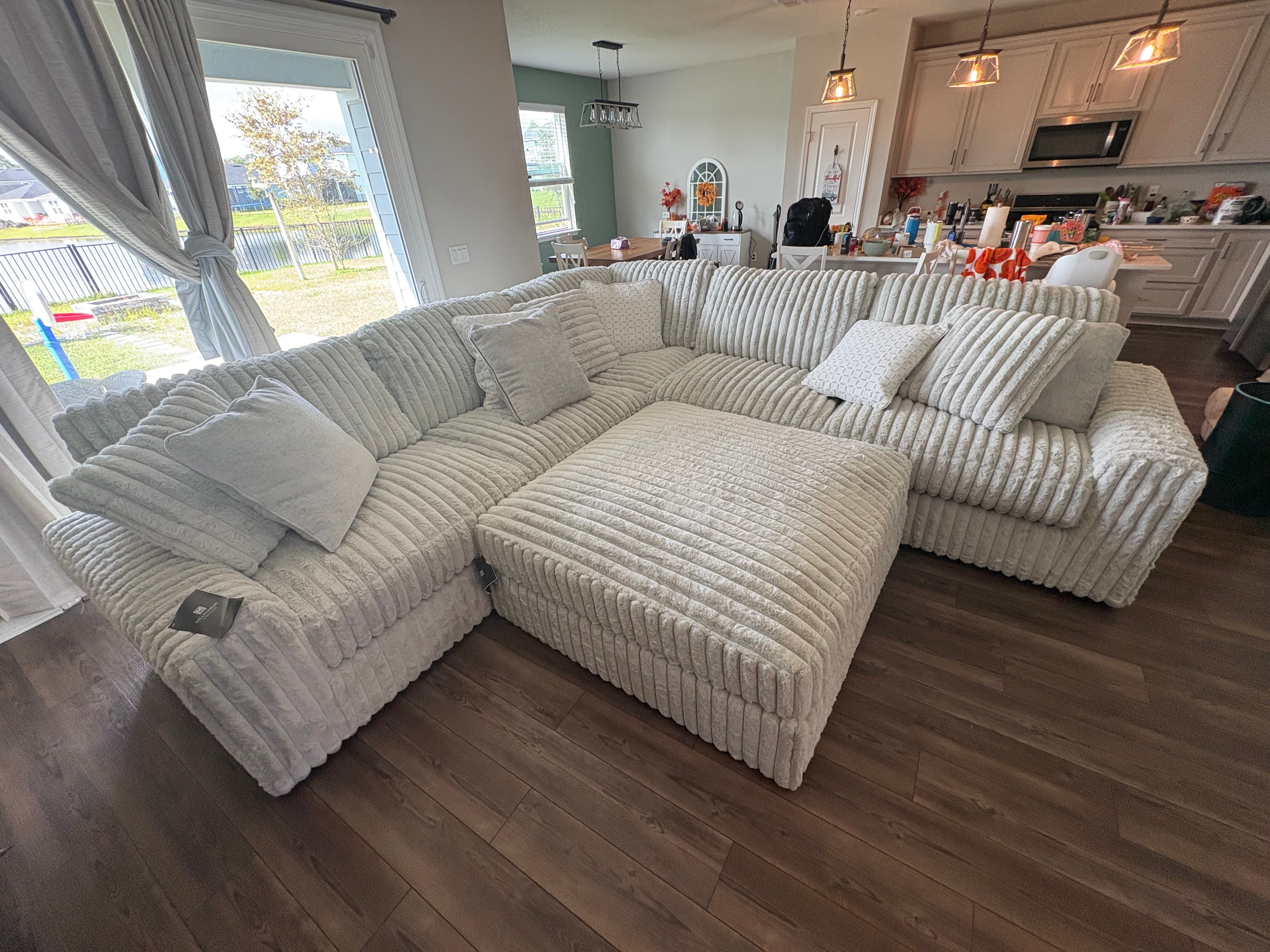 Don’t want to sacrifice standout style for majorly cozy seating? This sectional pairs bold character with sink-in comfort. Its retro-cool jumbo cord over feather-blend cushions creates a luxuriously soft lounging experience. With this sectional, you can balance everyday relaxation and your unique eye for design.