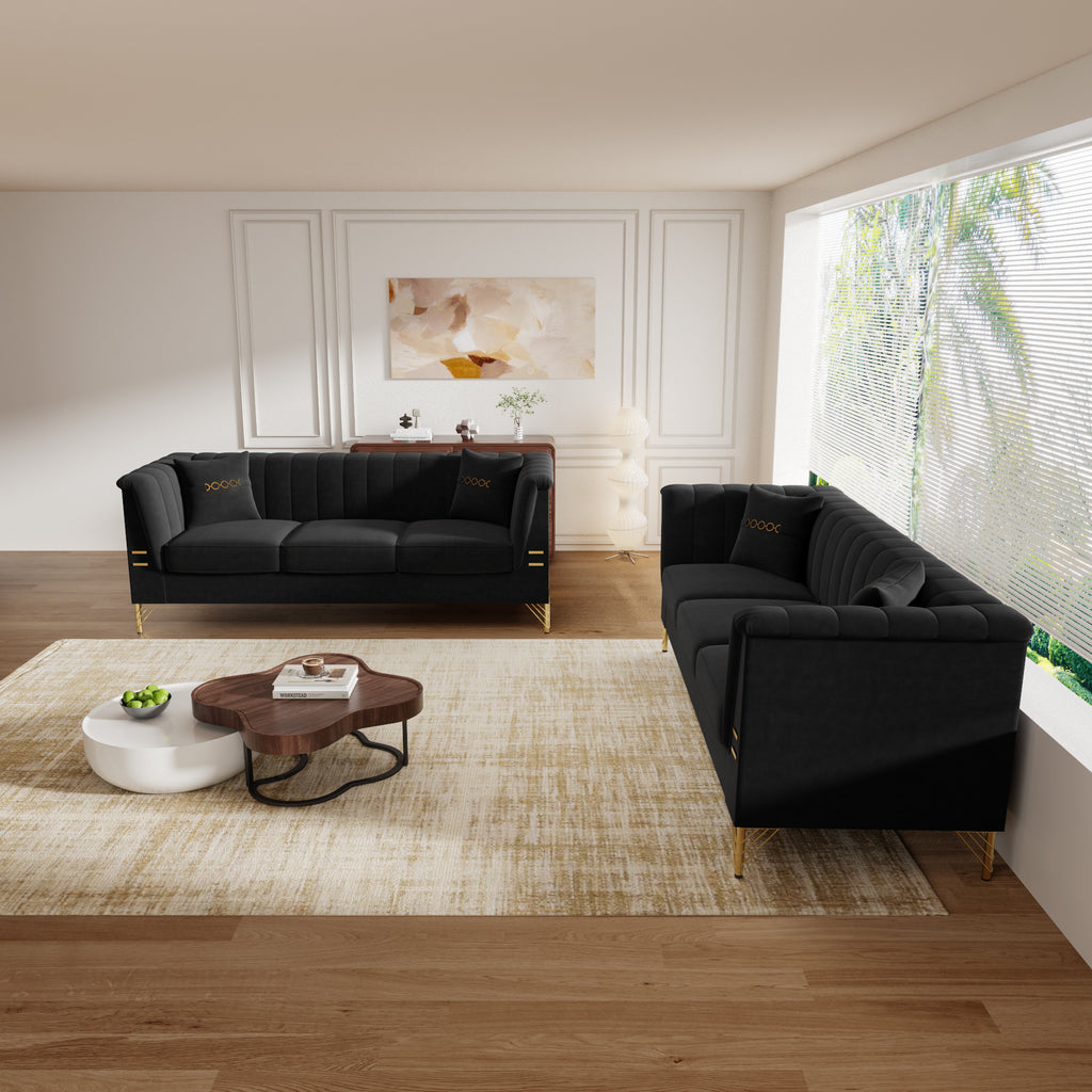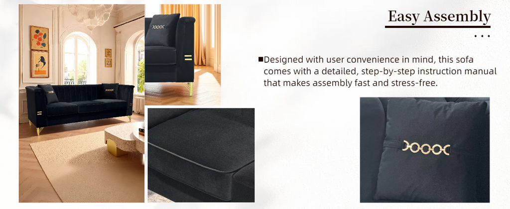 - Each sofa features thick high-density foam cushions and a supportive tufted backrest, ensuring comfort for family gatherings, movie nights, or entertaining guests.