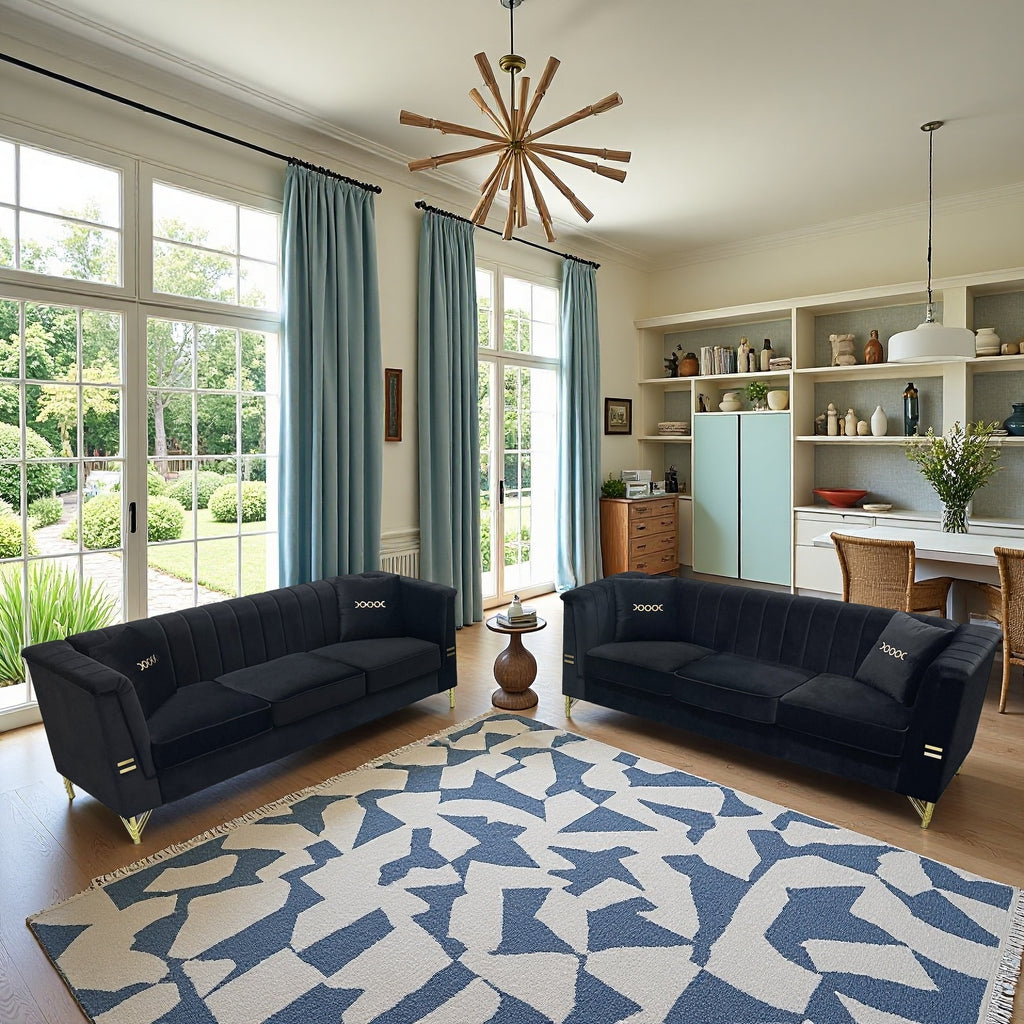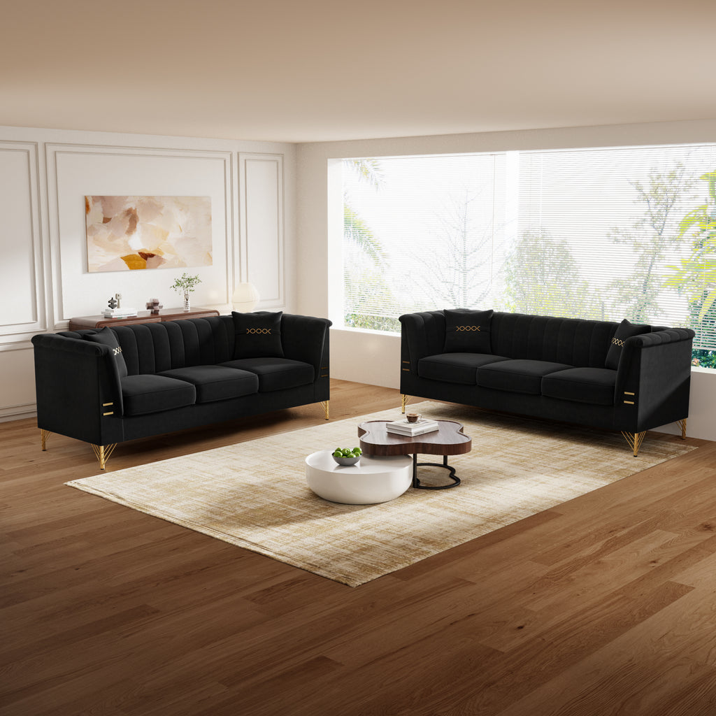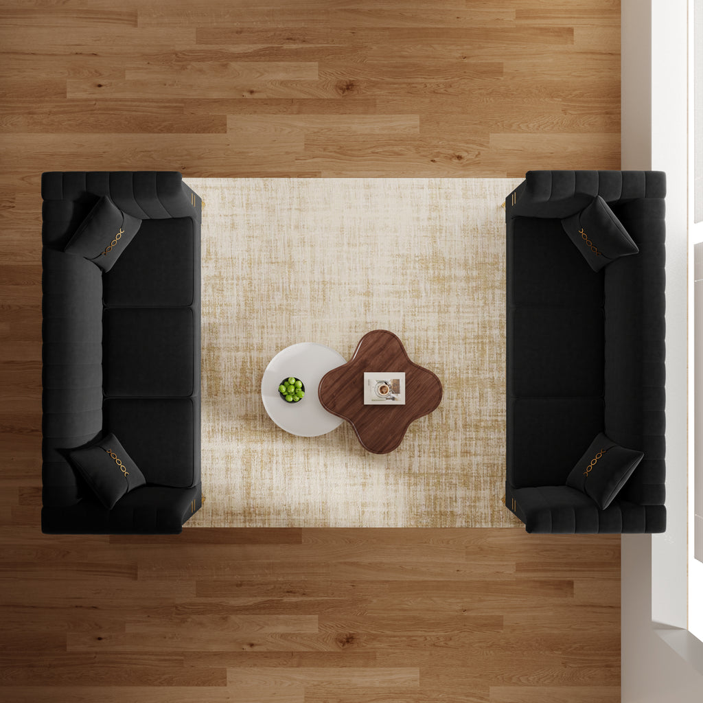 Each sofa features thick high-density foam cushions and a supportive tufted backrest, ensuring comfort for family gatherings, movie nights, or entertaining guests.
