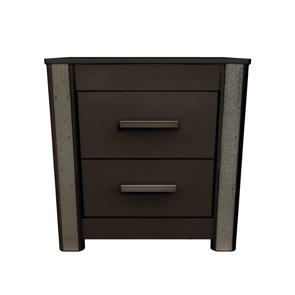 Love sleek and bold contemporary style? Drink in the beauty of this nightstand. Its eye-catching details include glam glitter accents and the look of leather grain with a subtle gray finish. Large-scale linear handles, in a sophisticated champagne chrome tone, play perfectly with the streamlined aesthetic. This bedside piece is a simply stunning way to achieve the bedroom of your dreams.