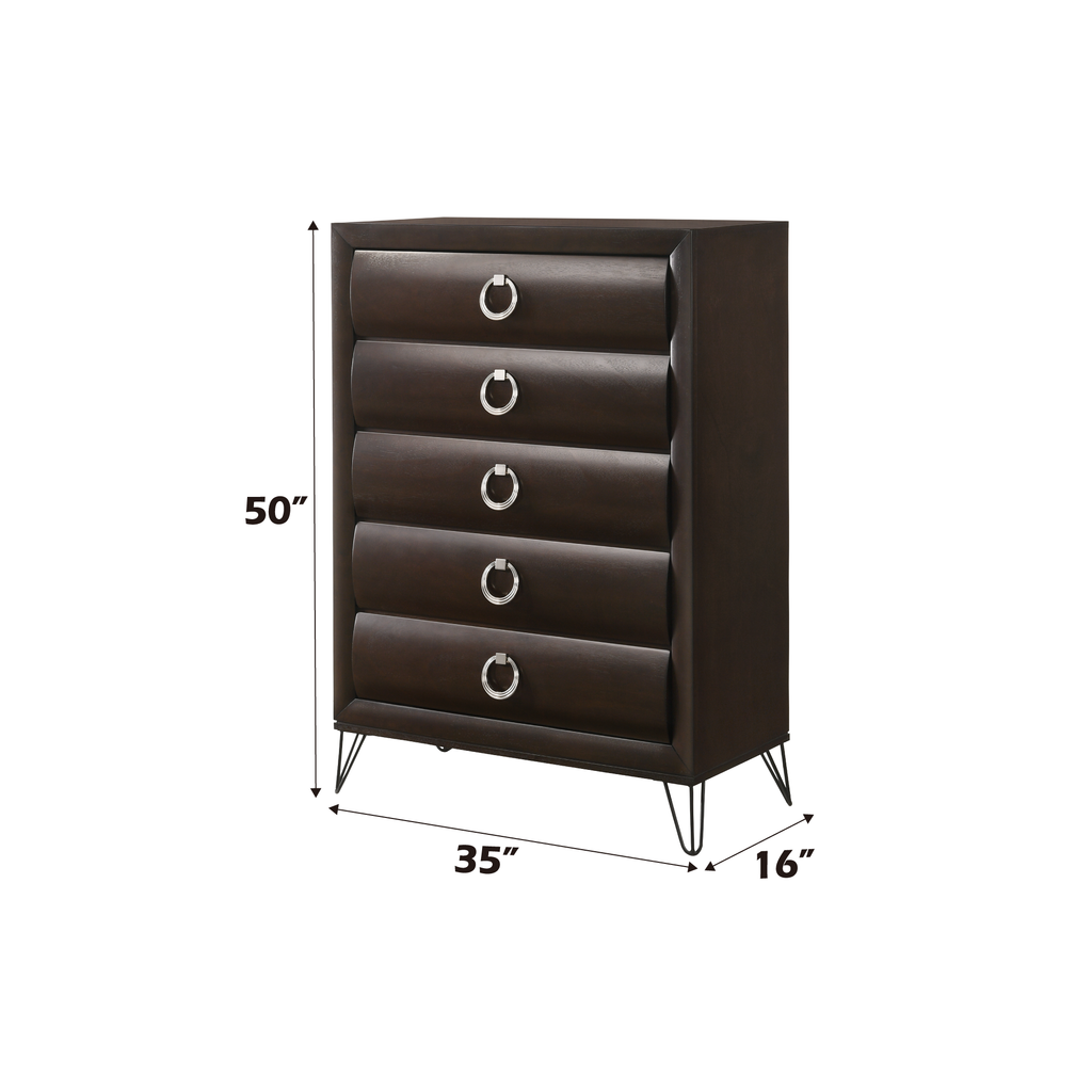 - This contemporary chest features five drawers with elegantly curved fronts, offering both style and functional storage for any space.