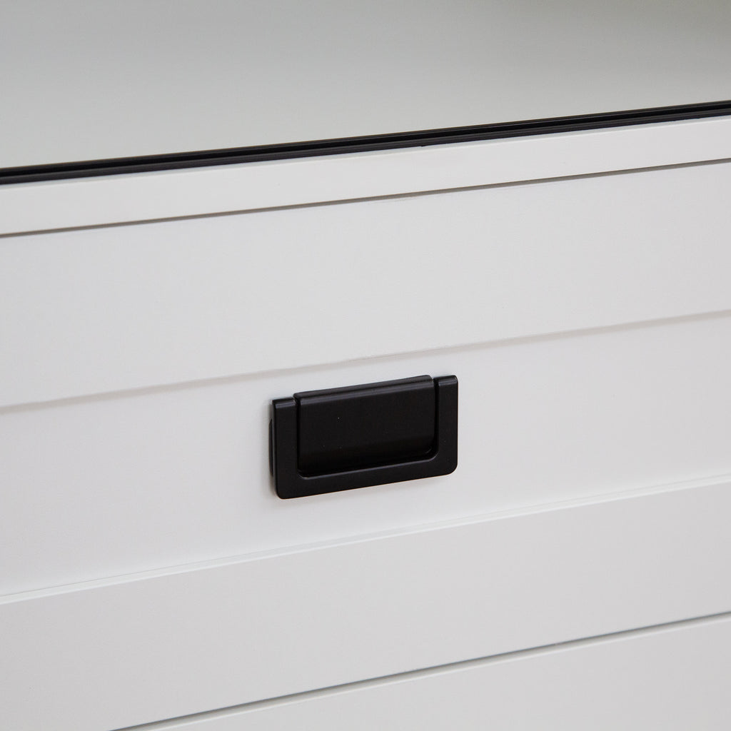 - Manufactured in thickened environment friendly MDF board which is treated with face in suction molding.Frame thickness is 18mm,shelf thickness is 15mm.