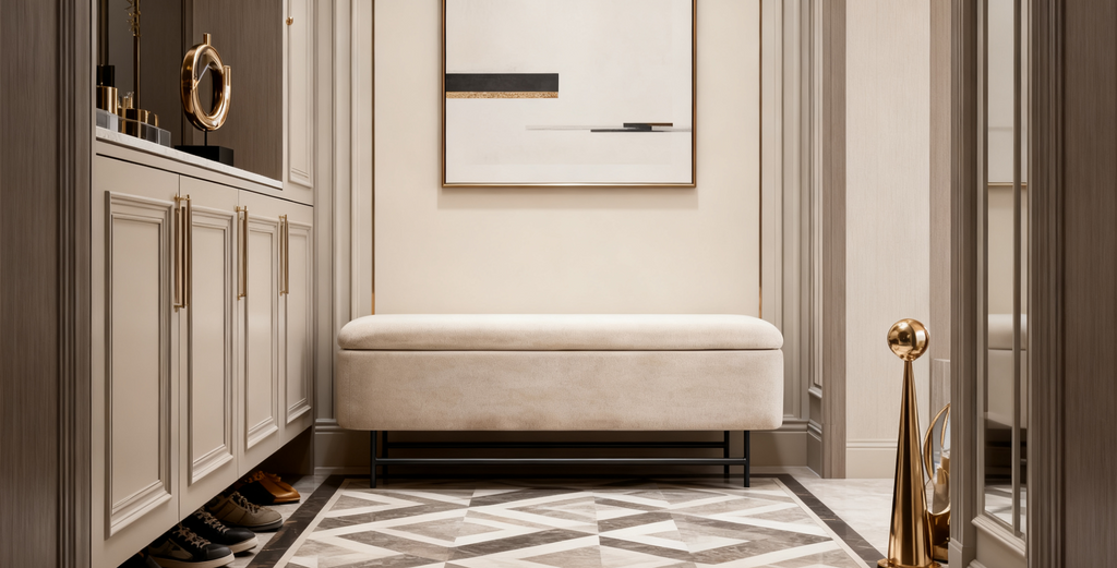 - 【Modern & Functional Design 】Featuring a chic oval shape and practical lift-top storage, this velvet bench combines modern style with everyday functionality, keeping your space organized in style.