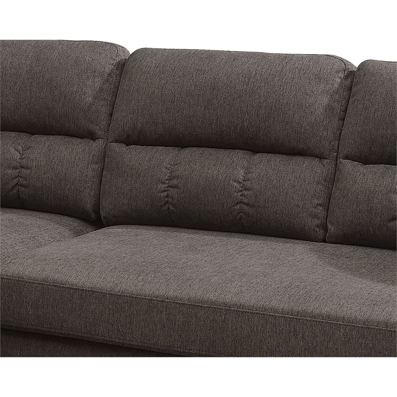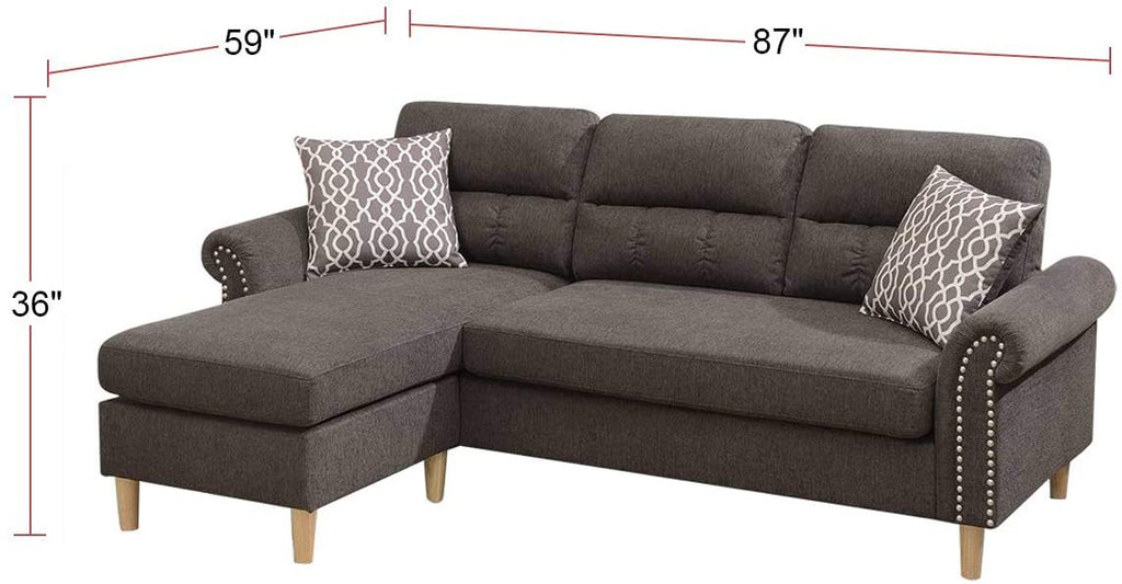 Maxime the small spaces while maintaining sleek style with this two-piece sectional, ideal for those wanting a cozy but contemporary piece to add to their living room. This reversible sectional offers selected velvet fabric upholstery, reflecting tufted back cushions, rolled armrests, and wooden-tapered legs that complement the look. Available in Slate Gray, Tan Brown, and Paprika Red finish.