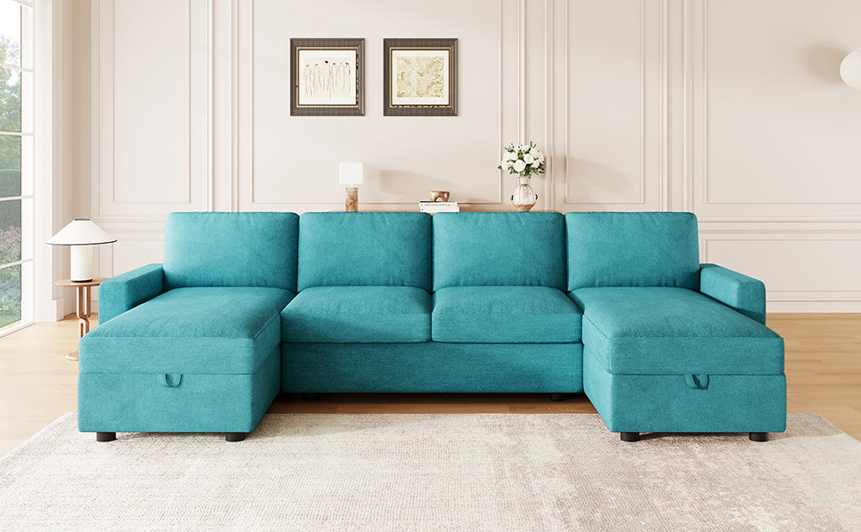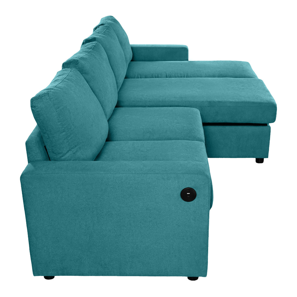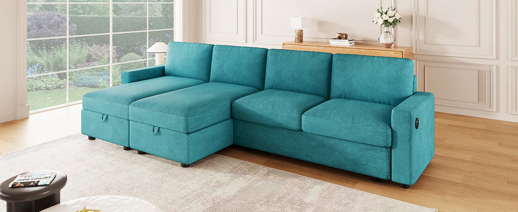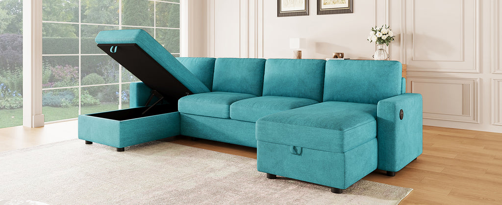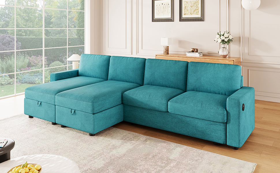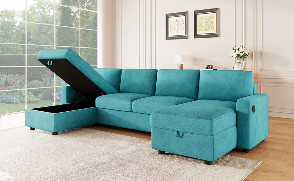 Experience the perfect blend of function, comfort, and modern style with this reconfigurable sectional sofa. Designed with two spacious hidden storage chaise lounges, it offers ample room to keep your living area clutter-free. The modular design allows for flexible arrangements to fit any room layout, while four built-in USB ports on both armrests ensure your devices stay charged and within reach. Upholstered in durable twill polyester fabric, this sofa combines a soft touch with impressive wear resistance—ideal for everyday family use. Deep seats and high-density foam cushions provide exceptional comfort for lounging, relaxing, or accommodating overnight guests.