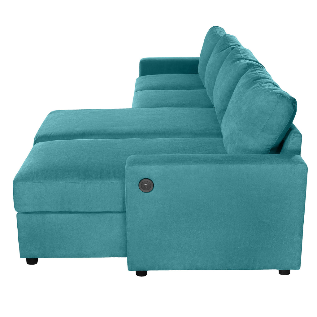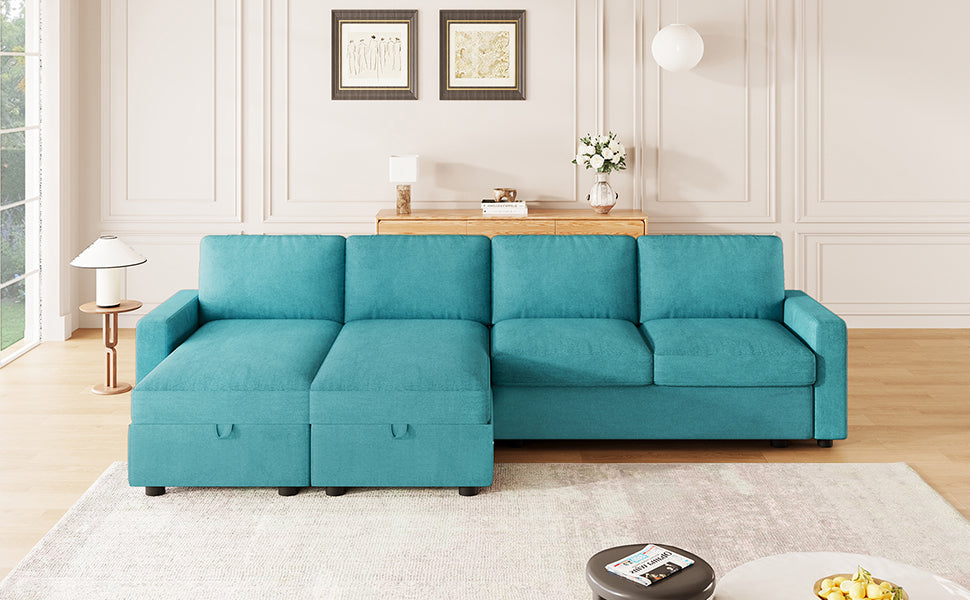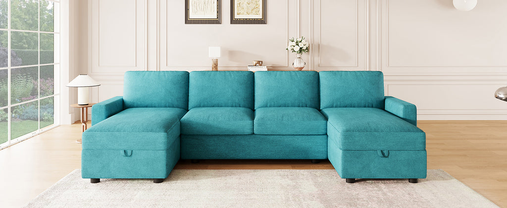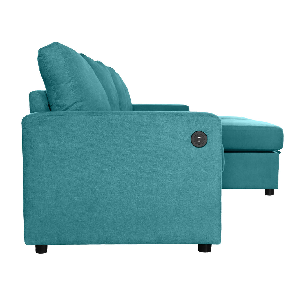 Experience the perfect blend of function, comfort, and modern style with this reconfigurable sectional sofa. Designed with two spacious hidden storage chaise lounges, it offers ample room to keep your living area clutter-free. The modular design allows for flexible arrangements to fit any room layout, while four built-in USB ports on both armrests ensure your devices stay charged and within reach. Upholstered in durable twill polyester fabric, this sofa combines a soft touch with impressive wear resistance—ideal for everyday family use. Deep seats and high-density foam cushions provide exceptional comfort for lounging, relaxing, or accommodating overnight guests.