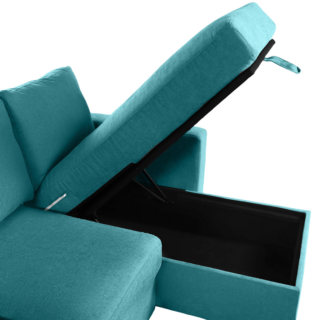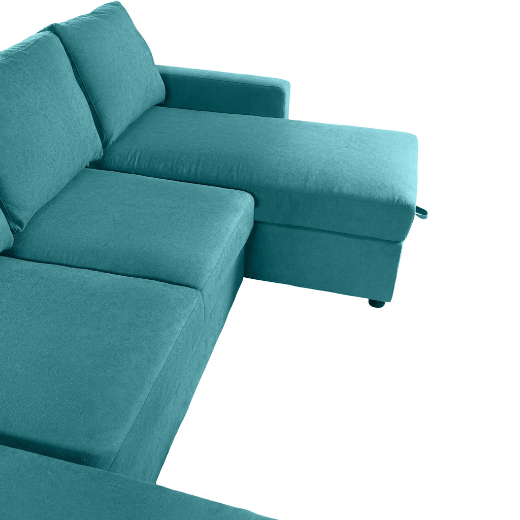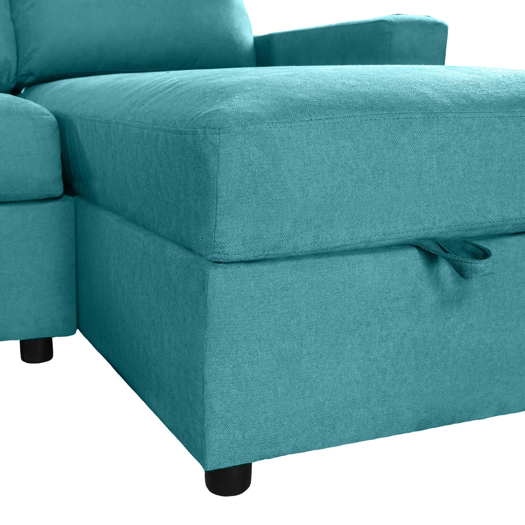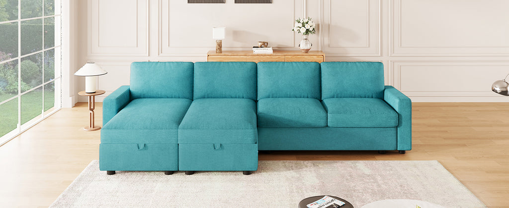 - Two Spacious Hidden Storage Chaise Lounges - This sectional sofa is designed with two generously sized hidden storage compartments (46.1”*20.5”*7.1”) beneath each chaise lounge. Unlike traditional sofas, these compartments open smoothly with a pull-strap mechanism, offering ample room to store blankets, bedding, off-season clothes, toys, or other household essentials.