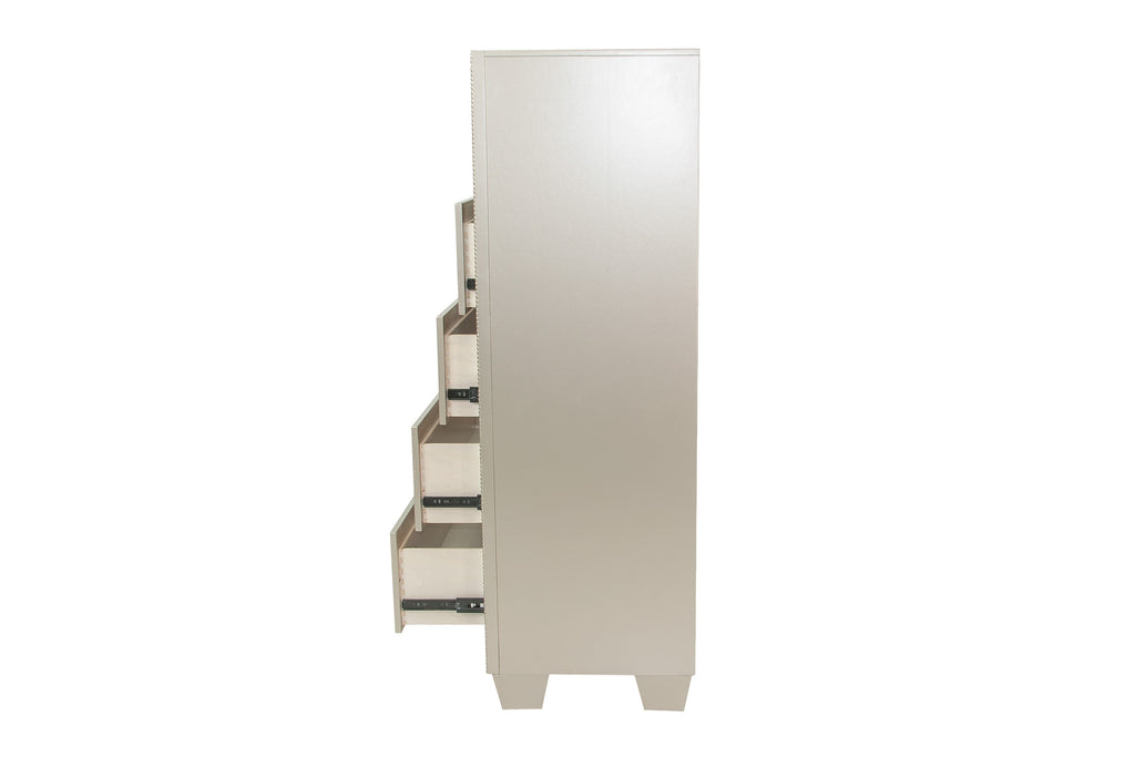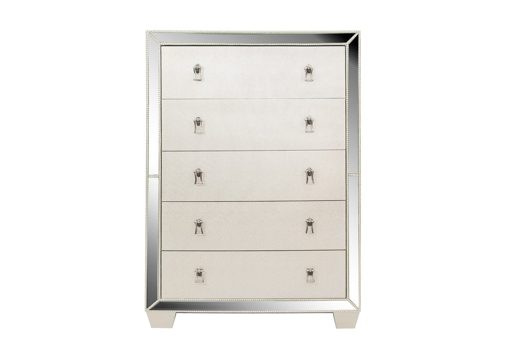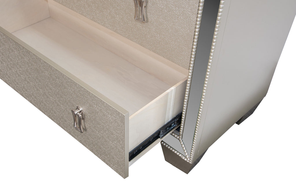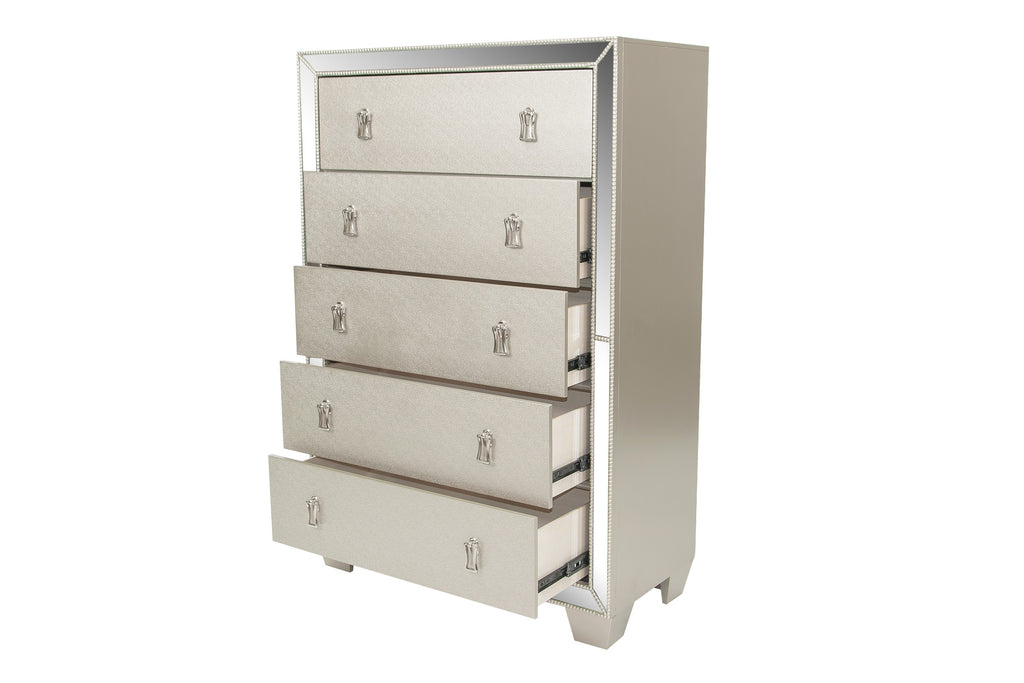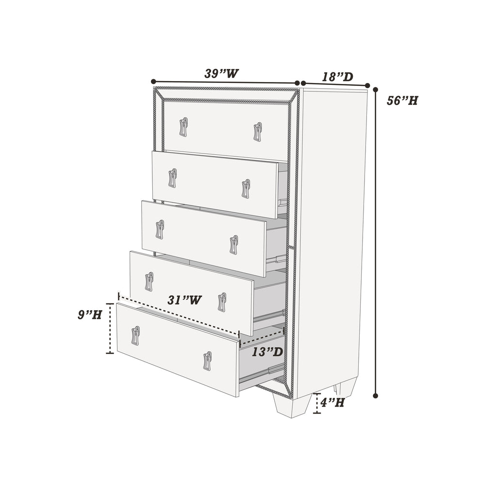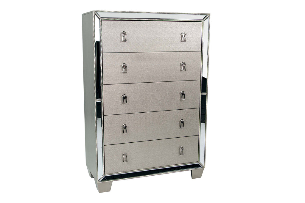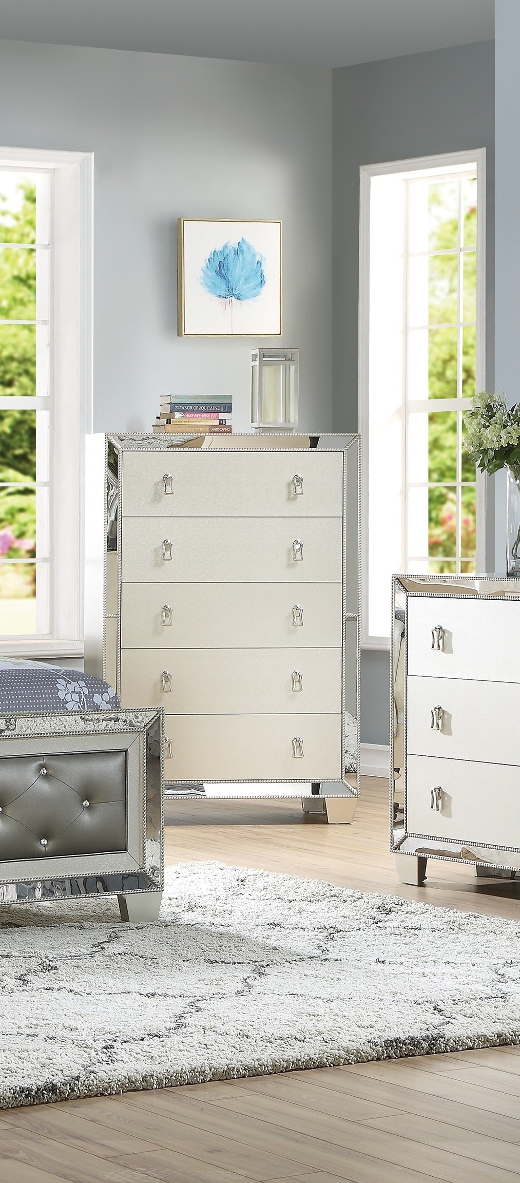 This contemporary style bedroom chest offers a stylish appearance enhances your room look. Elevate the style with this unique design drawers pulls and also these drawers provides generous space for a convenient space for your daily items.