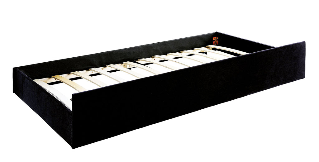 Elevate your space with this stunning transitional black flannelette daybed, featuring an elegant button-tufted design and sophisticated nailhead trim. Its tuxedo-inspired frame includes a convenient pull-out trundle, perfect for accommodating guests or providing extra sleeping space. Crafted with durable wood, this stylish daybed offers both exceptional comfort and a chic aesthetic for any modern home.