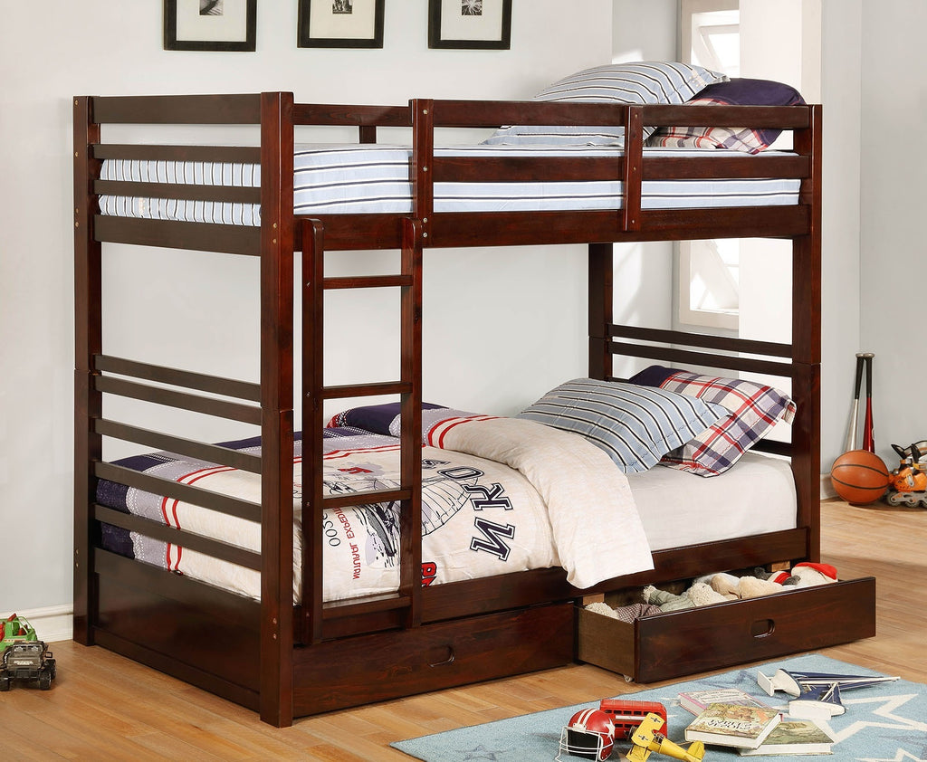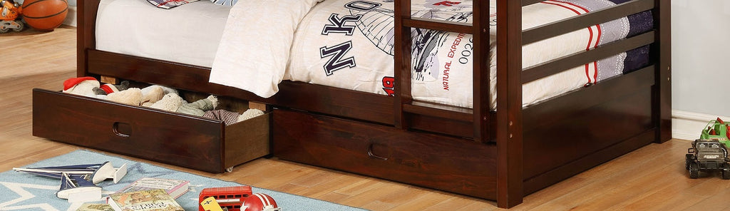 Classic design elements like sturdy block supports, mission style head and footboards, along with wooden paneled railing keep the safety levels at a maximum. The array of color options and the prototypical design makes it easy to add this bunk to your current interiors.