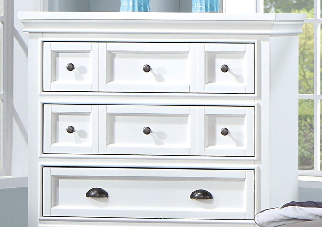 Take serenity home with this chest from the Castile collection. Topped with beautiful crown molding details, the white finish and the nickel cup pulls complement each other well in tone and hue.
