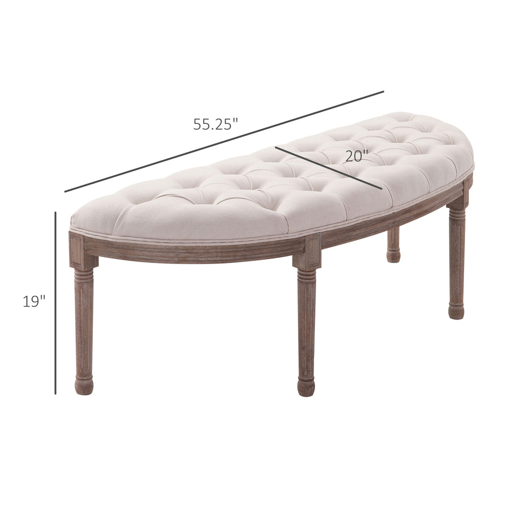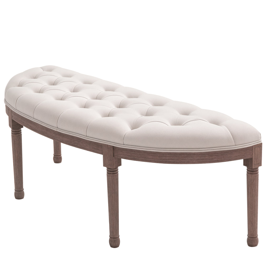 - Vintage Design: This semi-circle sitting bench is a french inspired piece of furniture that accents your house with timeless elegance. Weathered fluted legs add vintage glamour to your home setting.