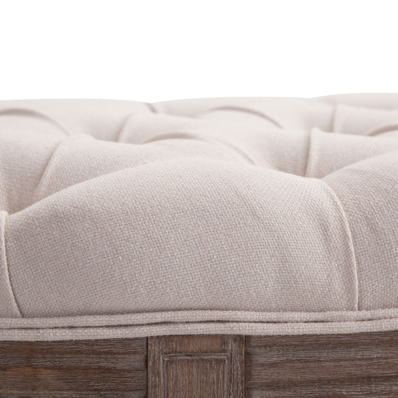 - Sturdy: Plush polyester fabric ensures easy cleaning, while turned rubberwood legs add to its stability and durability. Attached to this padded bench are non-skid foot pads can well prevent ground scratches.