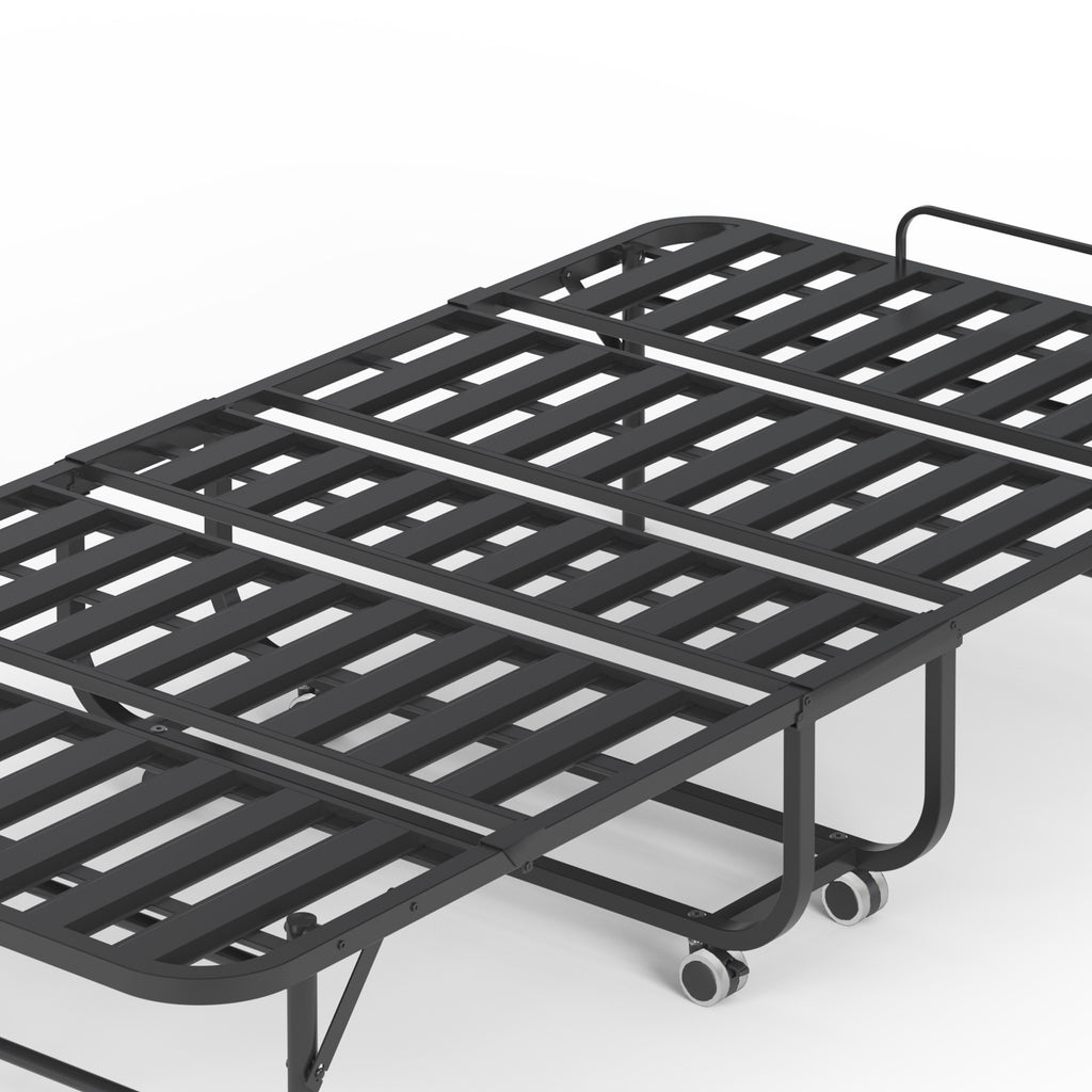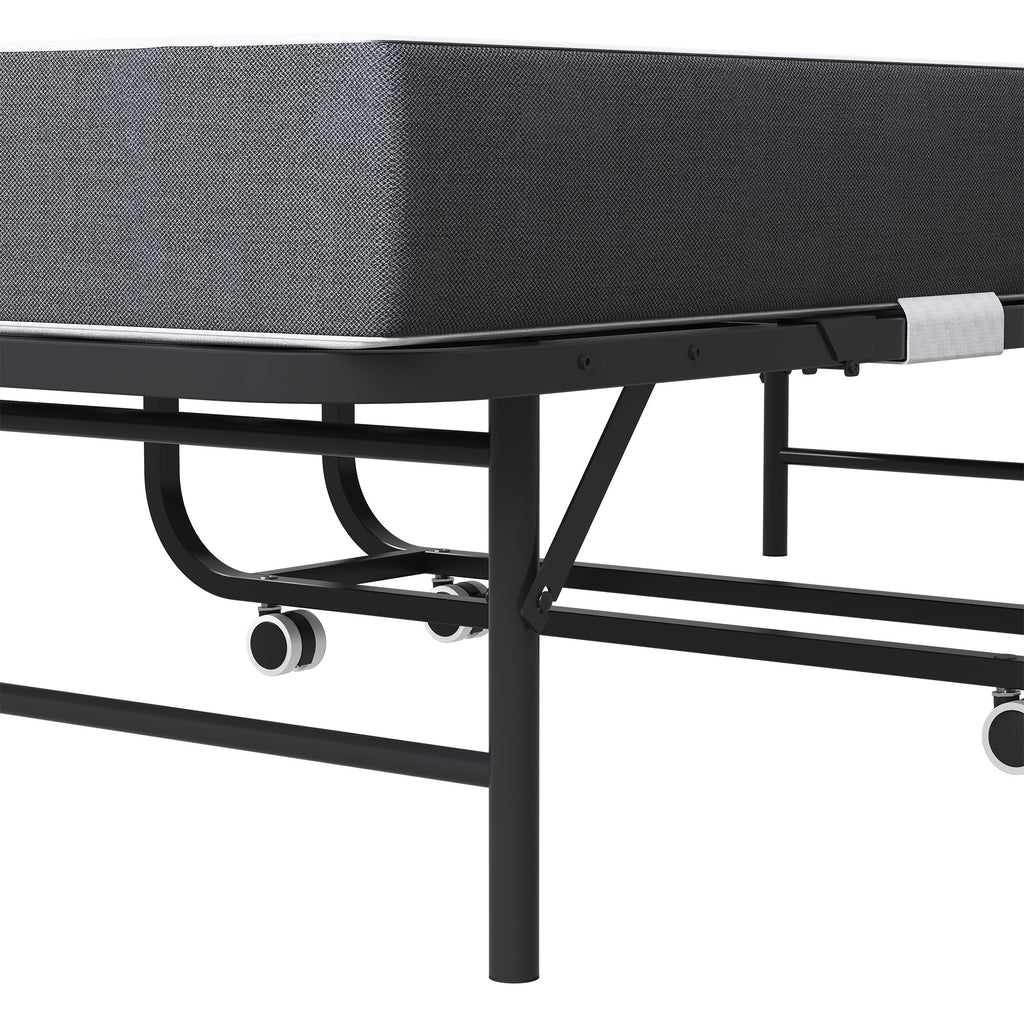 Say goodbye to uncomfortable sleeping arrangements for your guests with our Folding Bed with Mattress. This portable and foldable extra bed is the perfect solution for small spaces and unexpected overnight stays. The 3.7-inch thick memory foam mattress, composed of 2.2-inch high-resilience sponge and 1.5-inch gel memory foam, provides exceptional comfort and support, relieving spinal pressure and ensuring a good night's sleep. The upgraded iron bed board and sturdy metal frame offer excellent durability and stability, supporting up to 300lbs. With 4 360° swivel wheels, it can be easily moved and locked in place, and the innovative buckle design makes folding and storage a breeze. Whether you need a guest bed, a rollaway bed, or a portable bed for any occasion, this Folding Bed with Mattress is the ideal choice. It's easy to assemble and use, saving you time and effort. Experience the convenience and comfort of our Folding Bed with Mattress and make your guests feel right at home