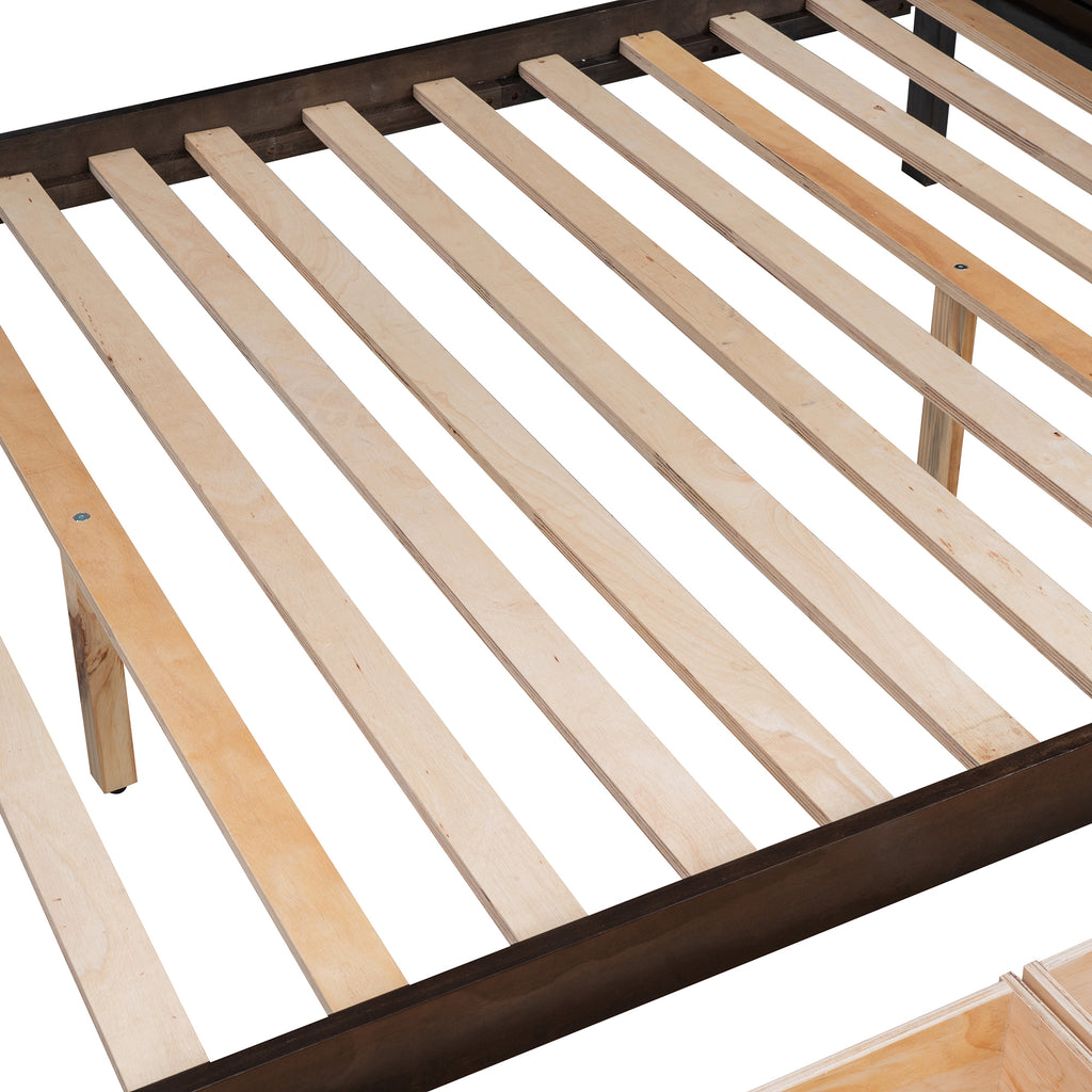 Maximize space with this stylish Twin Over Full Bunk Bed, featuring a clever storage staircase and two under-bed drawers perfect for decluttering. Crafted from solid wood for ultimate durability and safety, its versatile design includes a full-length guardrail and a convenient side shelf. Transform any bedroom into an organized, cozy haven with this functional and aesthetic bunk bed solution.
